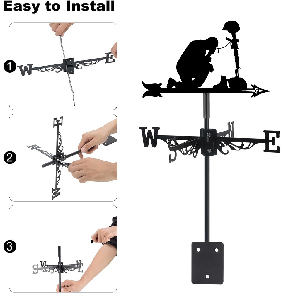 💕Creative design: This Weathervane is made of high-quality Stainless Steel. With stylish straight lines and satin black finishes. This anti-rust iron weather vane is decorated with exquisite patterns.
