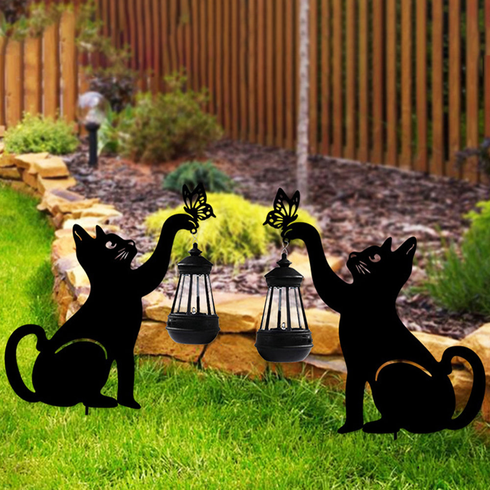 Cutout Cat Silhouette Outdoor Solar Light Metal Decorative Stake