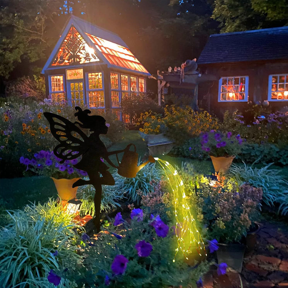 Watering Angel Silhouette Outdoor Solar Light Metal Decorative Stake