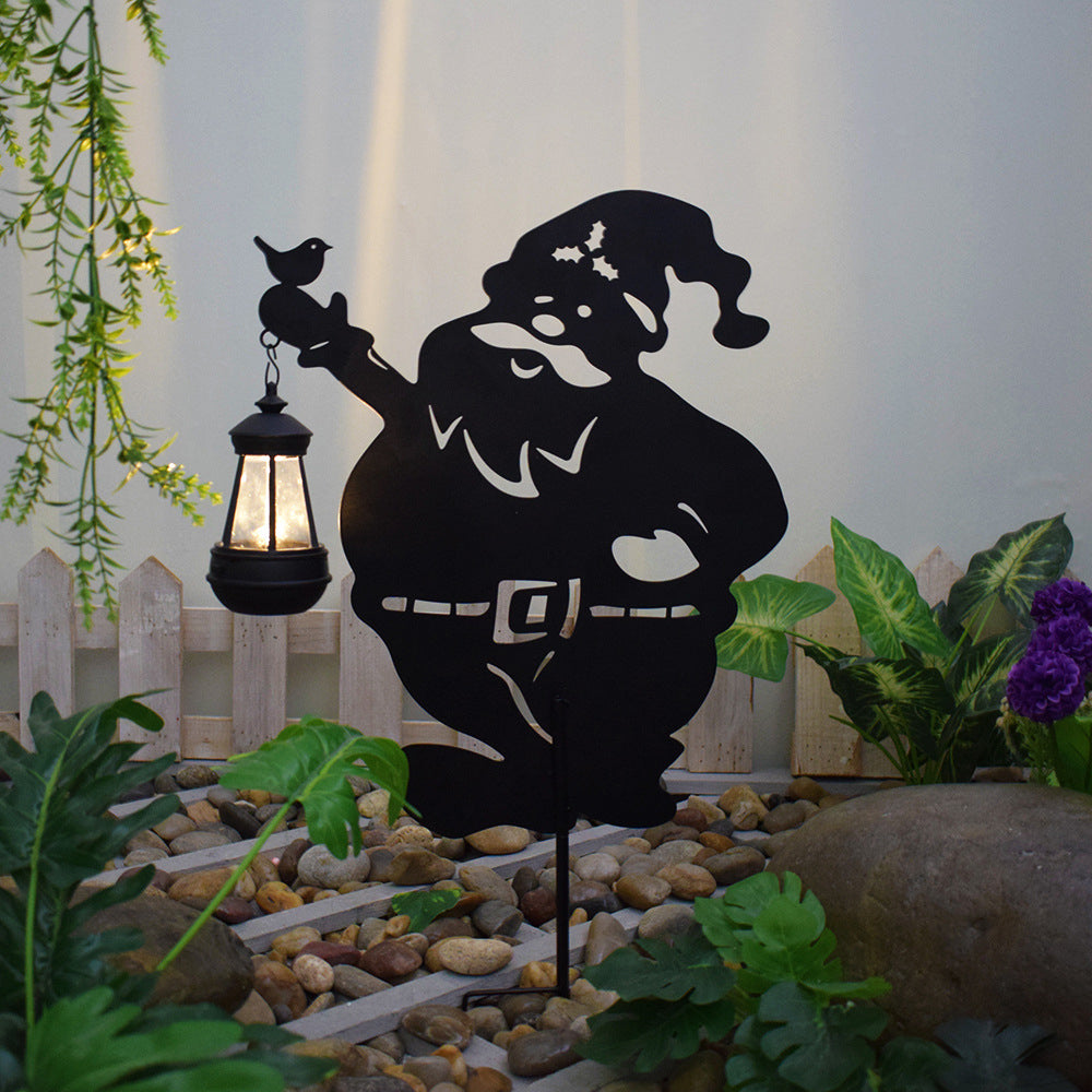 Santa Claus Silhouette Outdoor Solar Light Metal Decorative Stake