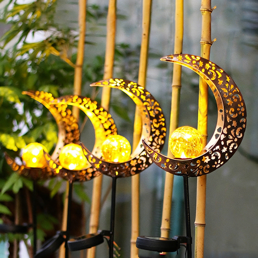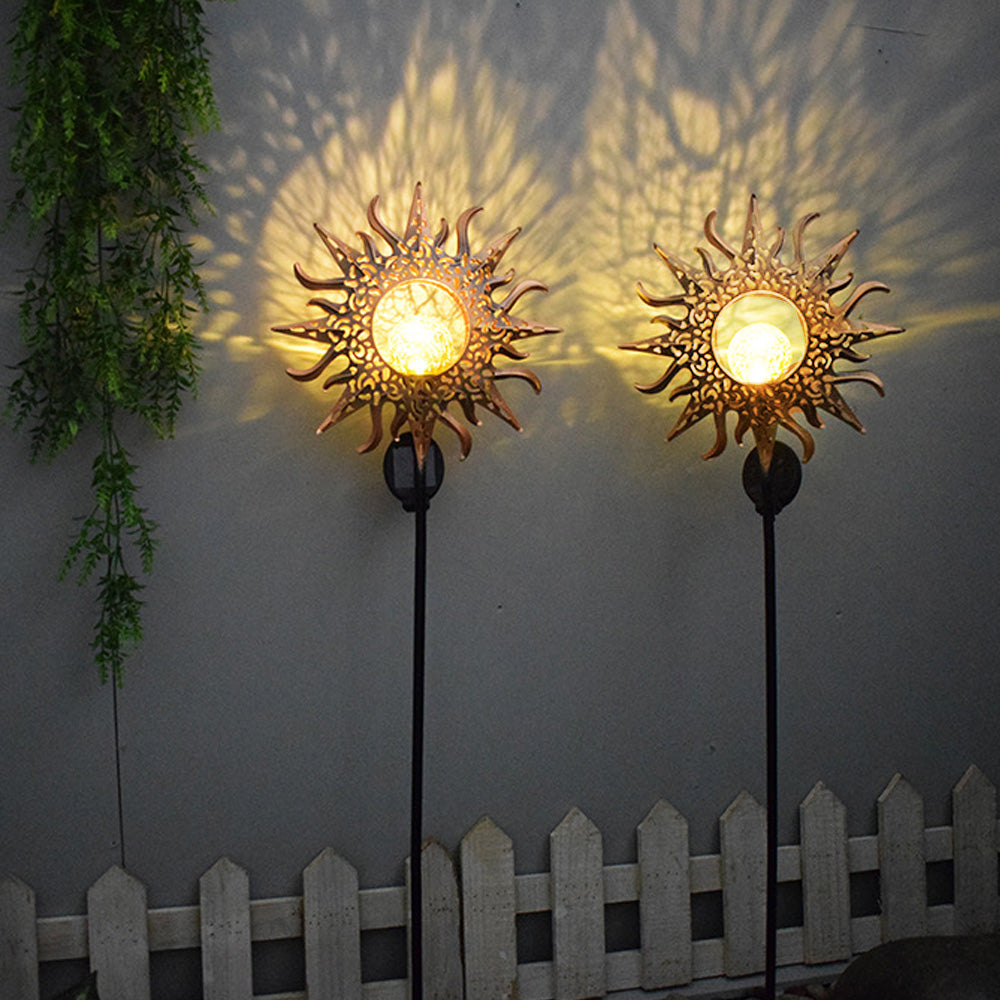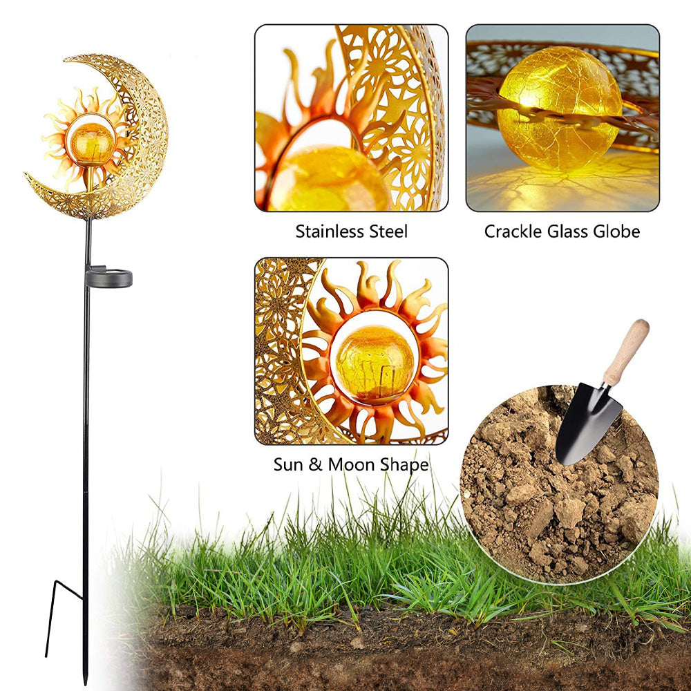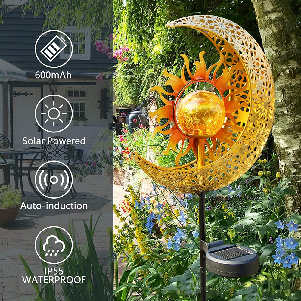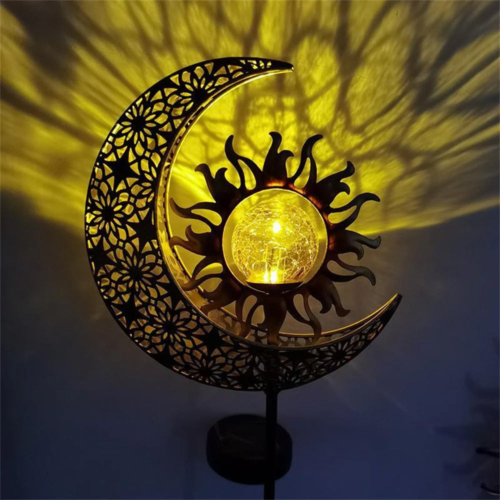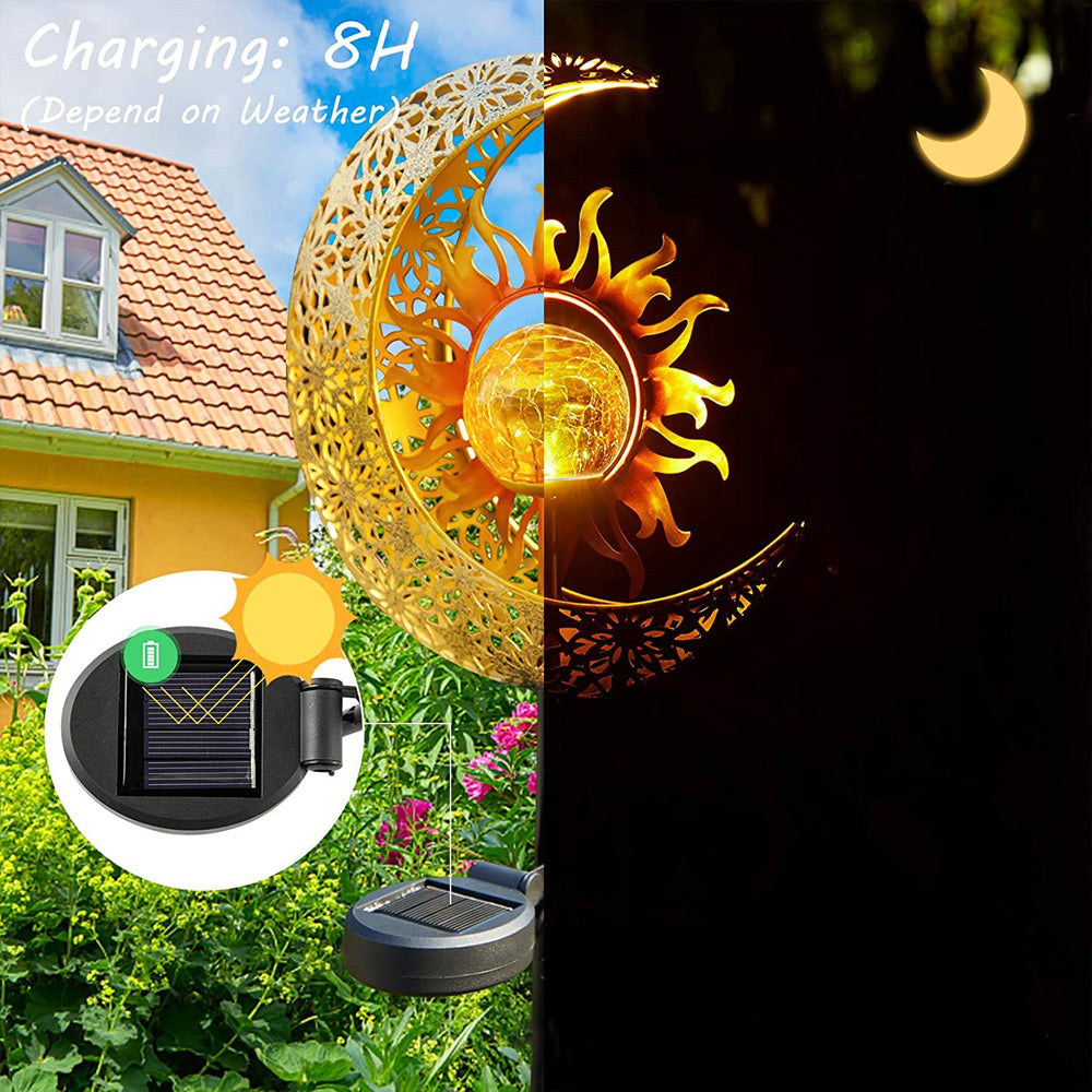 Sun and Moon Pattern Solar Lantern Metal Carving Outdoor Garden Solar Light