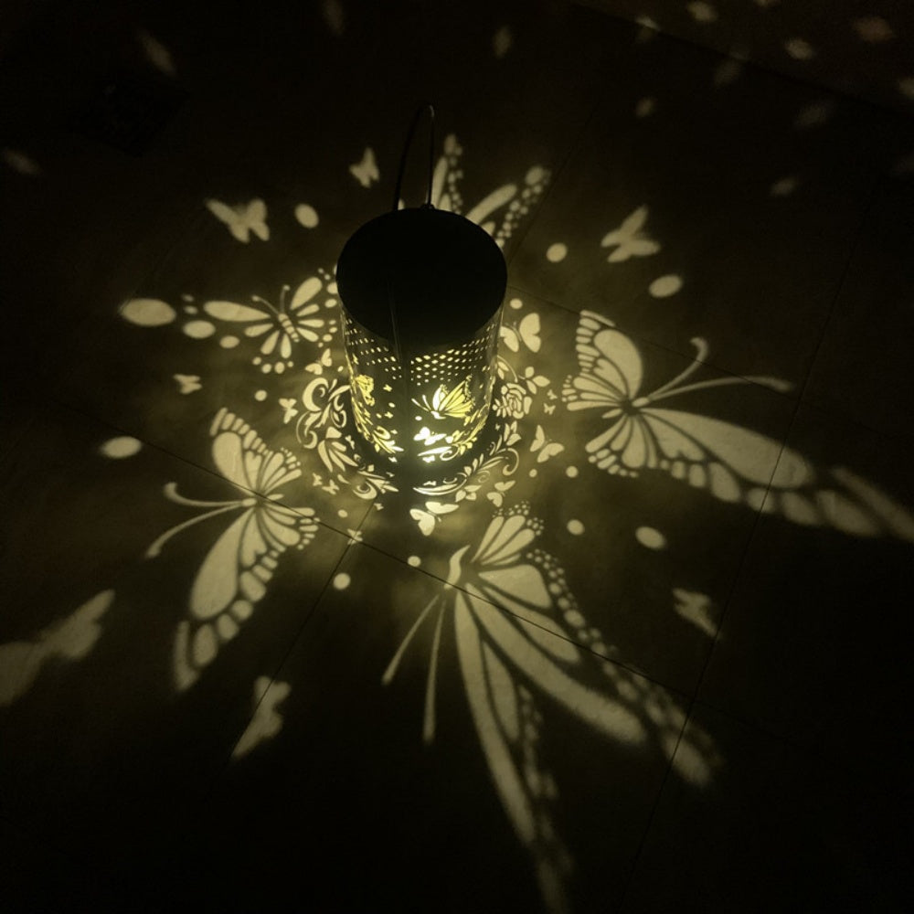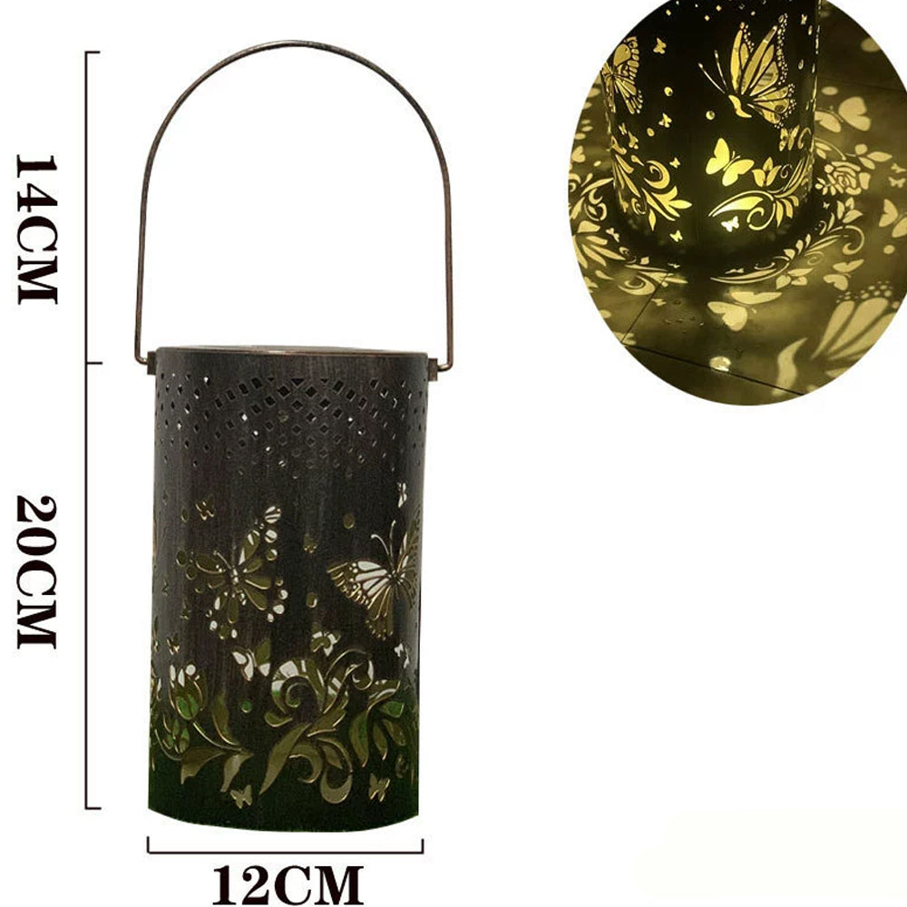 Colorful Butterfly Pattern Solar Lantern Metal Carving Outdoor Garden Solar Light