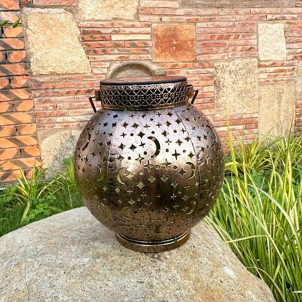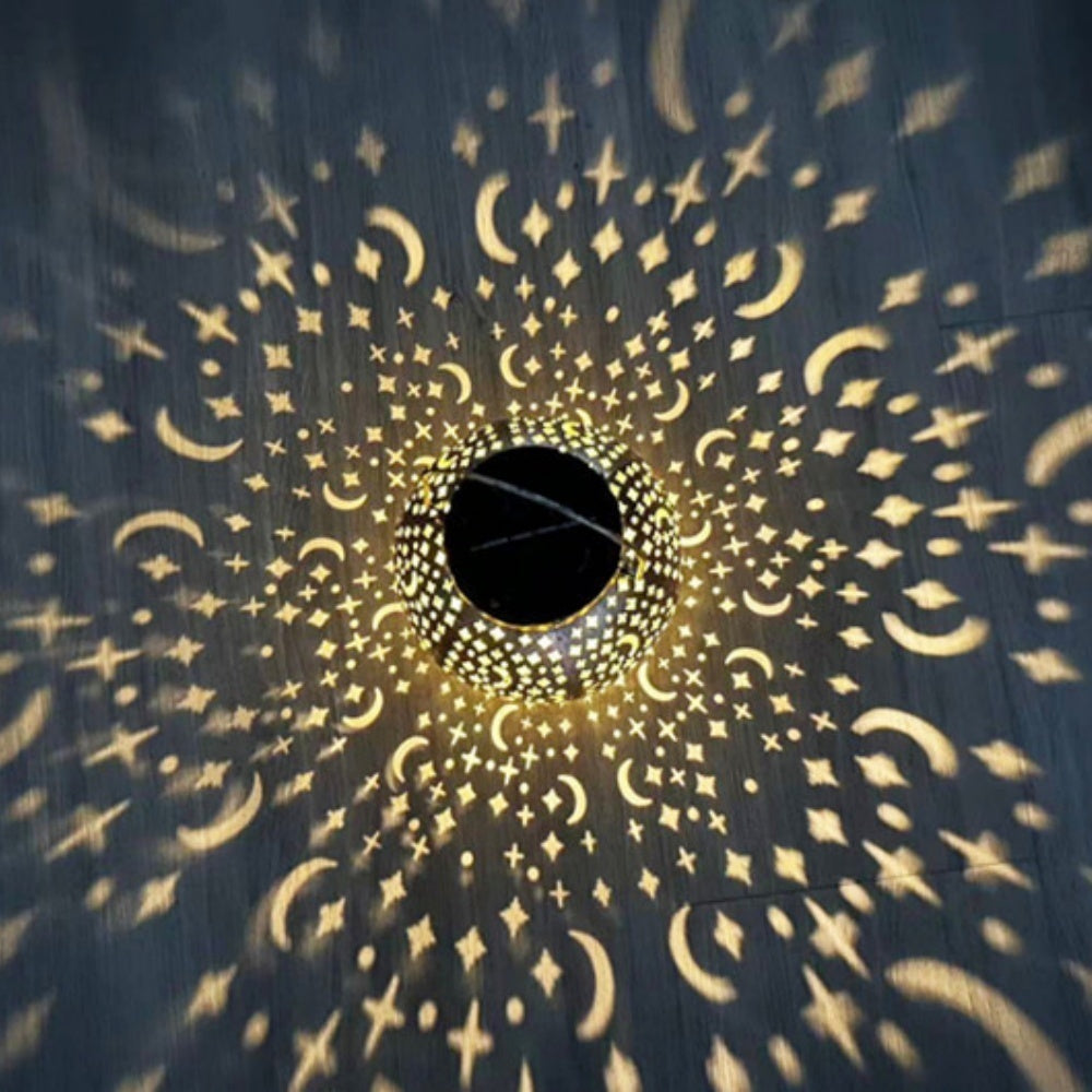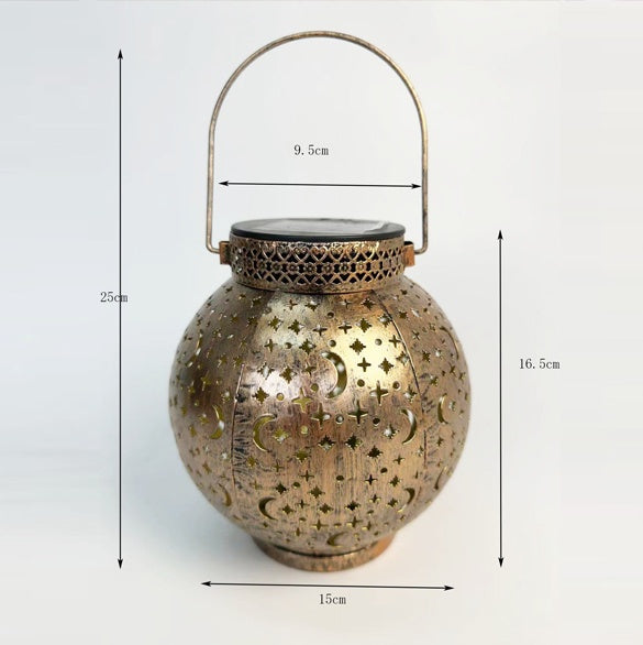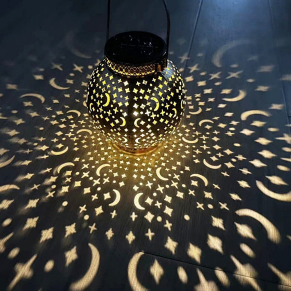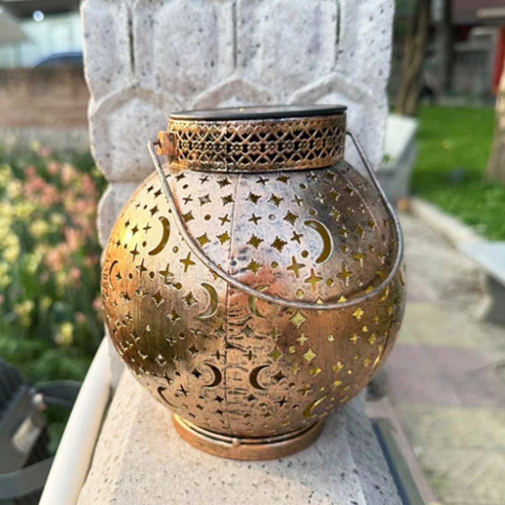 Star and Moon Pattern Solar Lantern Metal Carving Outdoor Garden Solar Light