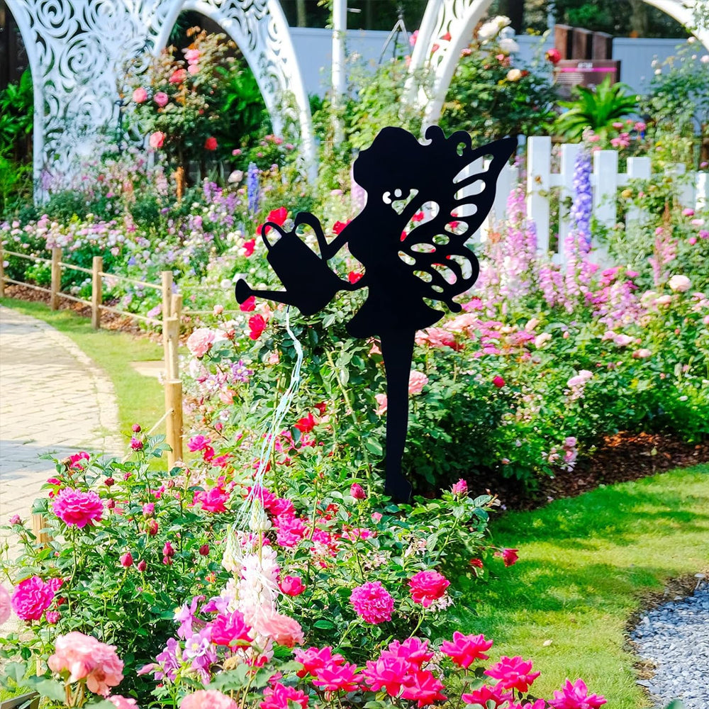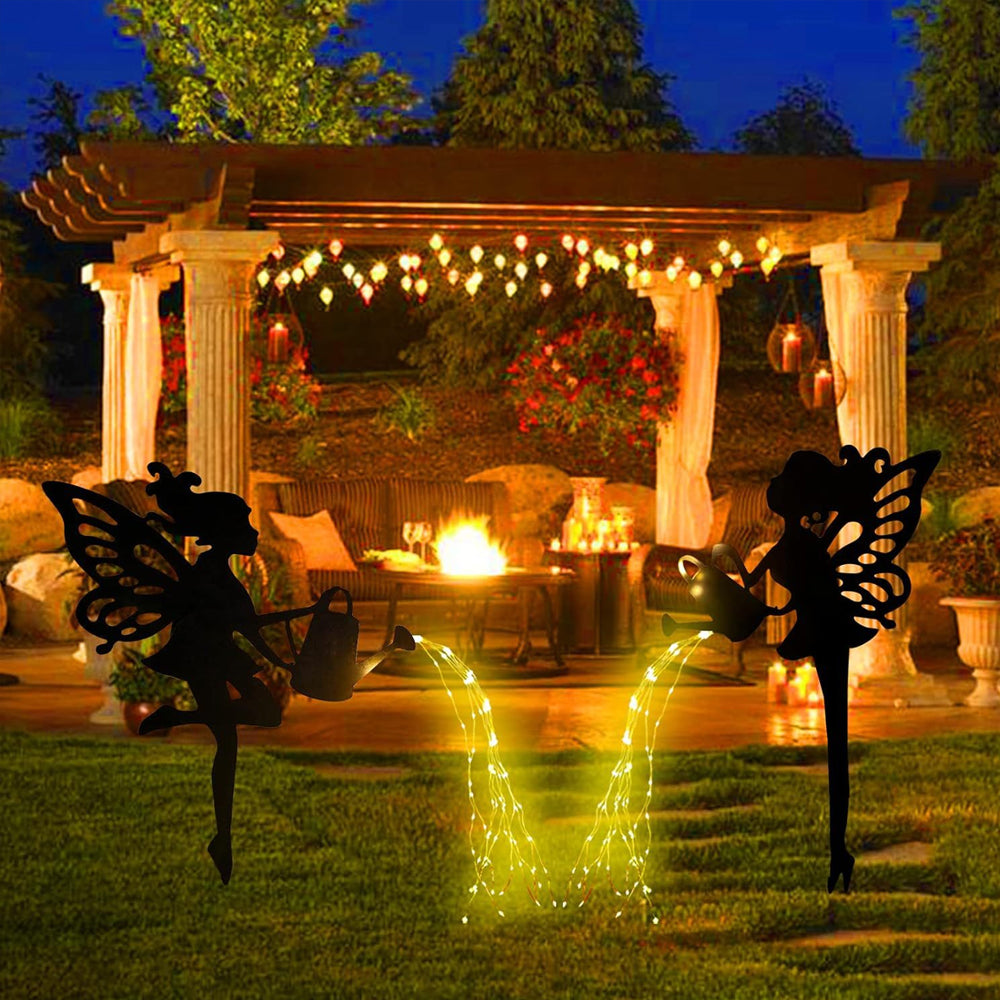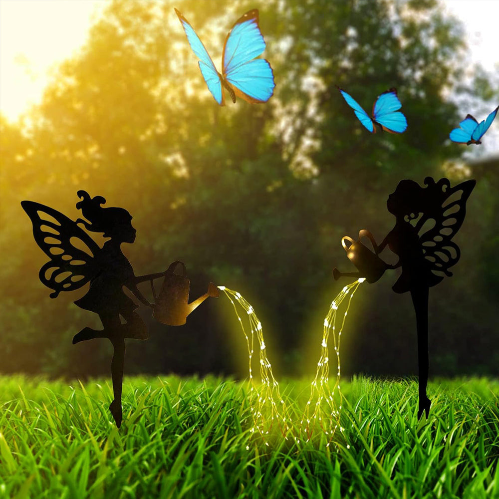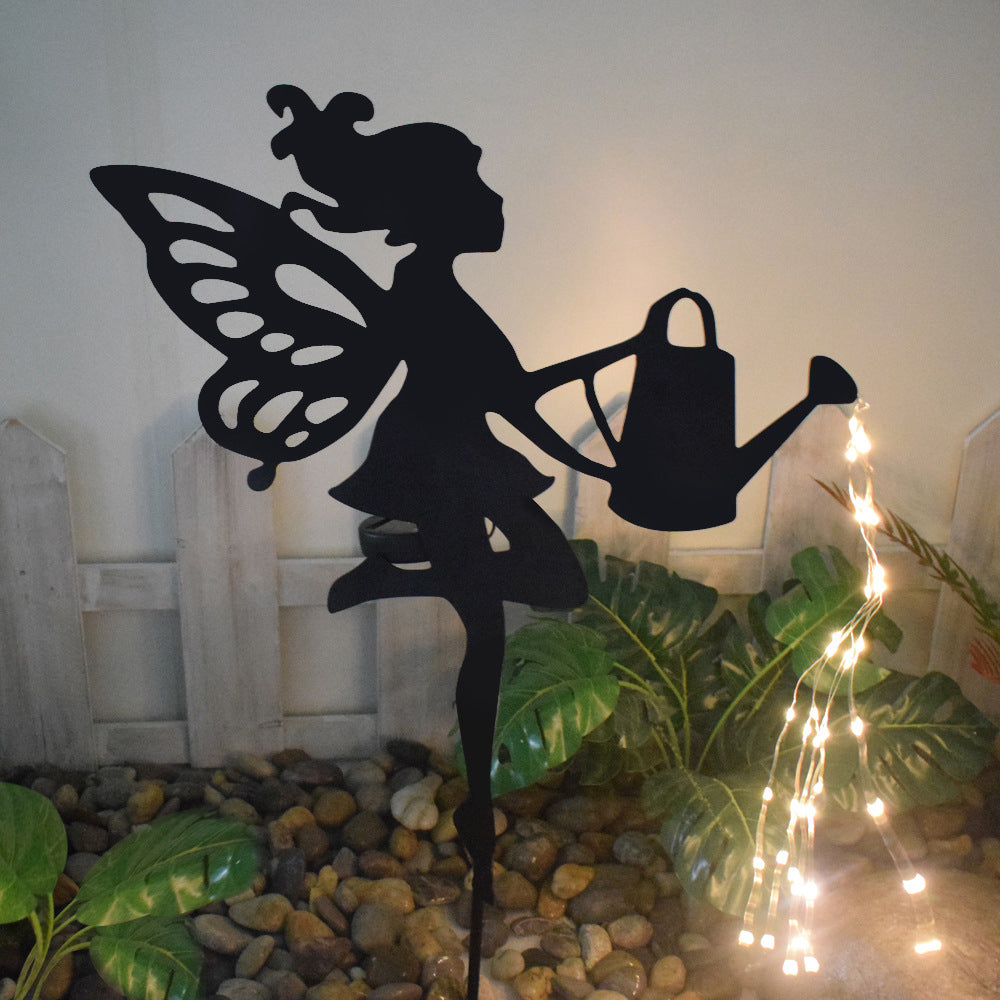 Watering Angel Silhouette Outdoor Solar Light Metal Decorative Stake