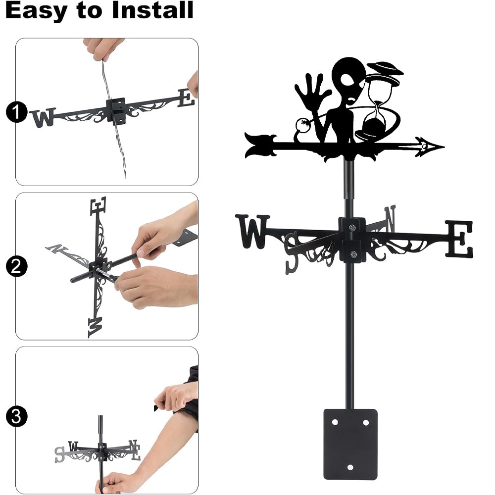 💕Creative design: This Weathervane is made of high-quality Stainless Steel. With stylish straight lines and satin black finishes. This anti-rust iron weather vane is decorated with exquisite patterns.