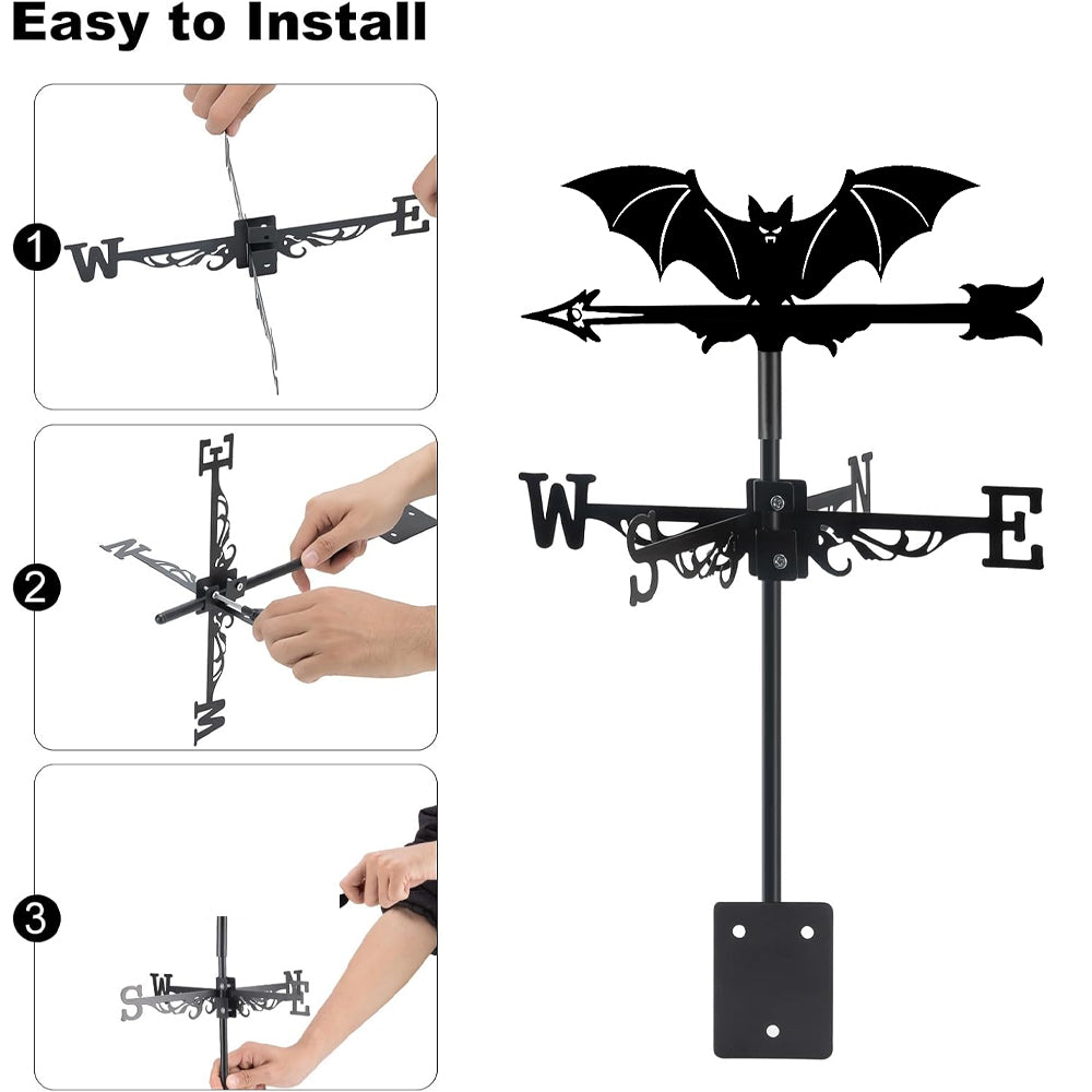 💕Creative design: This Weathervane is made of high-quality Stainless Steel. With stylish straight lines and satin black finishes. This anti-rust iron weather vane is decorated with exquisite patterns.