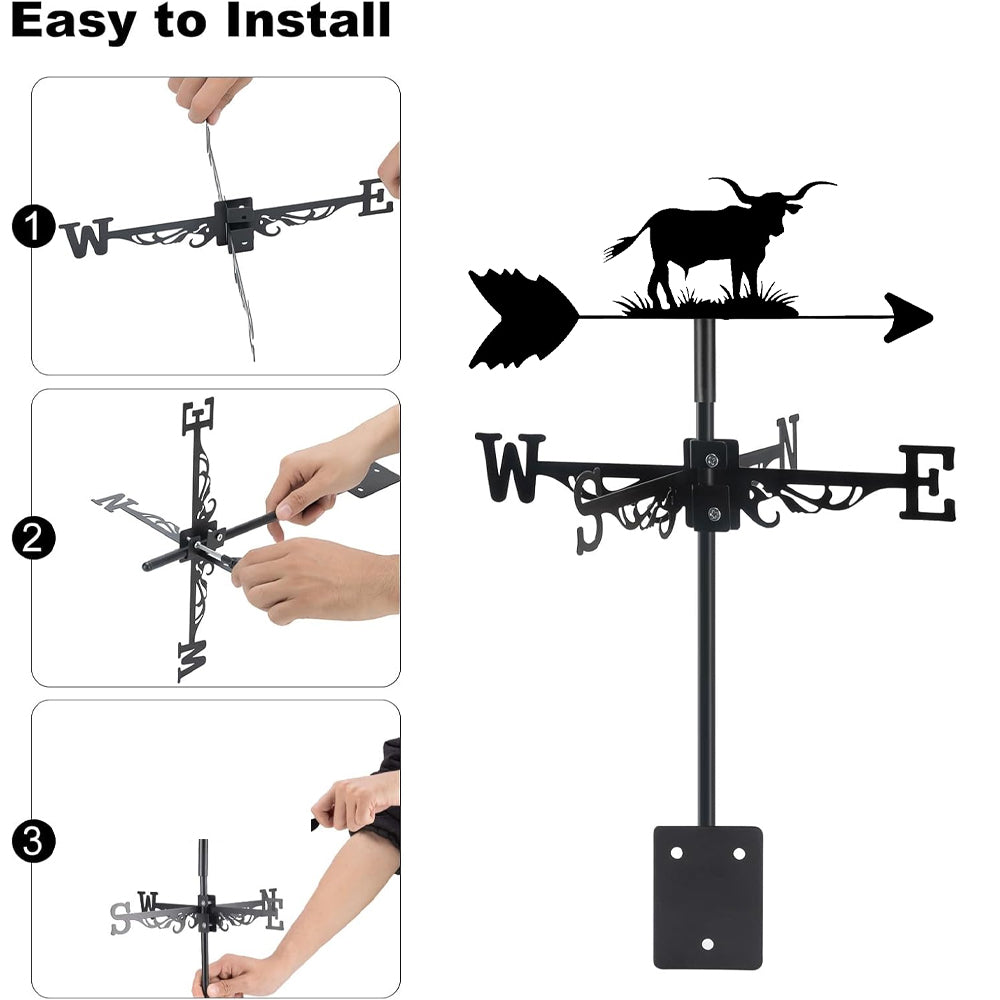 💕Creative design: This Weathervane is made of high-quality Stainless Steel. With stylish straight lines and satin black finishes. This anti-rust iron weather vane is decorated with exquisite patterns.