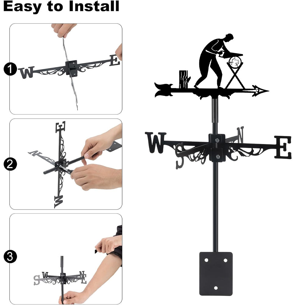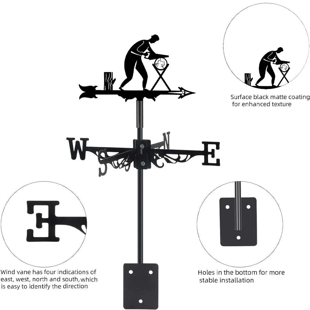 💕Creative design: This Weathervane is made of high-quality Stainless Steel. With stylish straight lines and satin black finishes. This anti-rust iron weather vane is decorated with exquisite patterns.