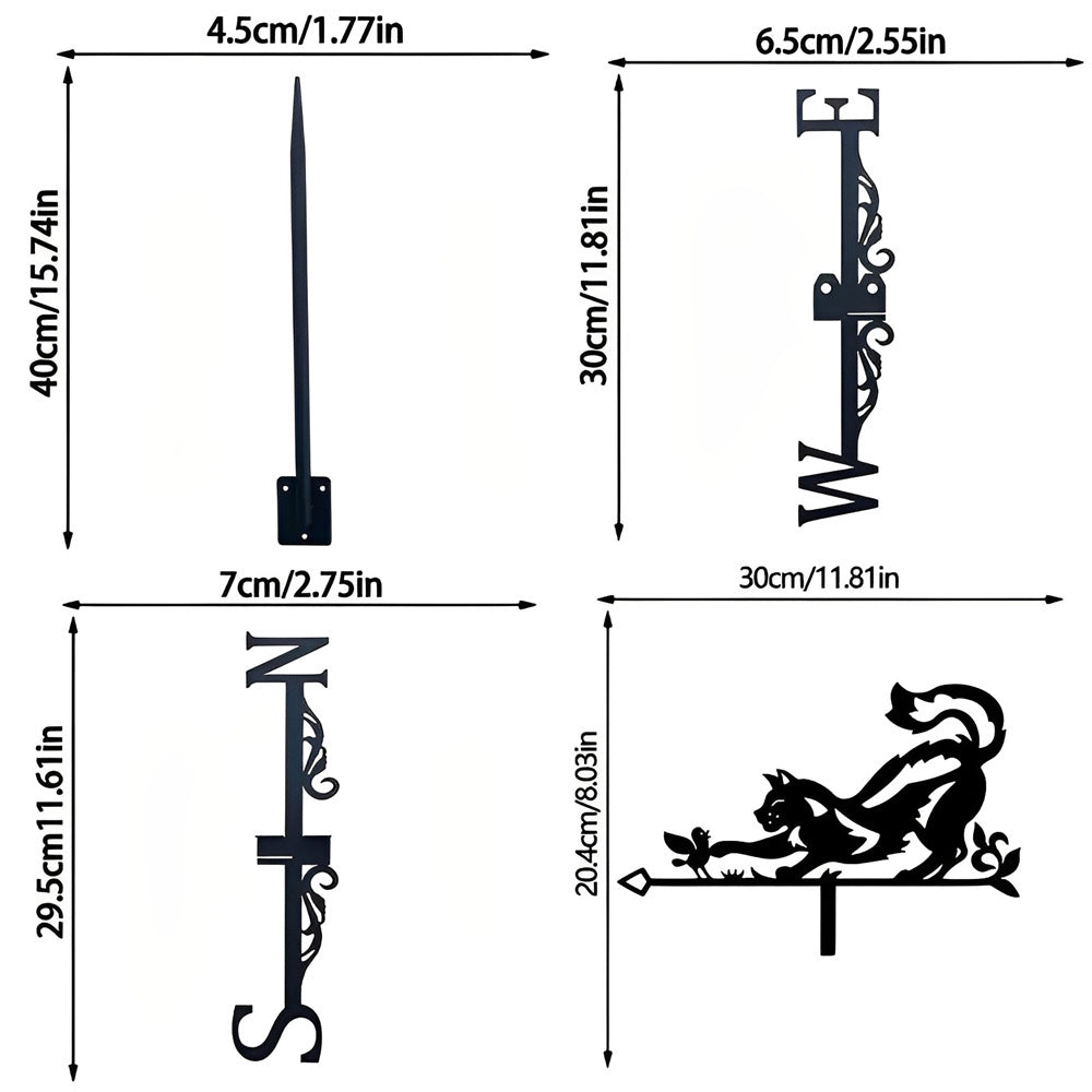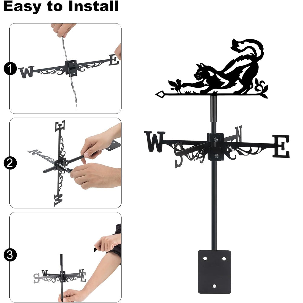 💕Creative design: This Weathervane is made of high-quality Stainless Steel. With stylish straight lines and satin black finishes. This anti-rust iron weather vane is decorated with exquisite patterns.
