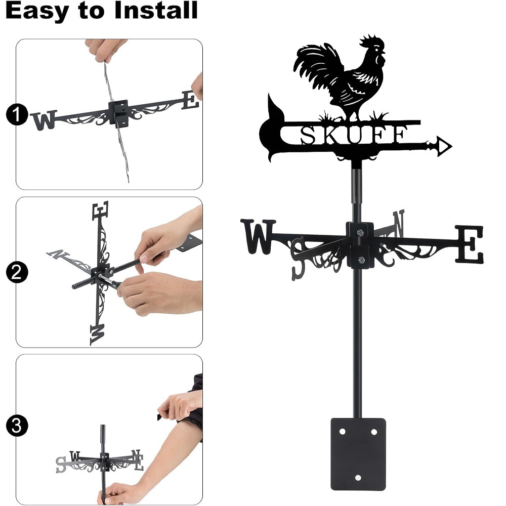 💕Creative design: This Weathervane is made of high-quality Stainless Steel. With stylish straight lines and satin black finishes. This anti-rust iron weather vane is decorated with exquisite patterns.