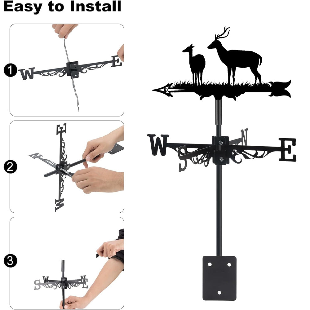 💕Creative design: This Weathervane is made of high-quality Stainless Steel. With stylish straight lines and satin black finishes. This anti-rust iron weather vane is decorated with exquisite patterns.