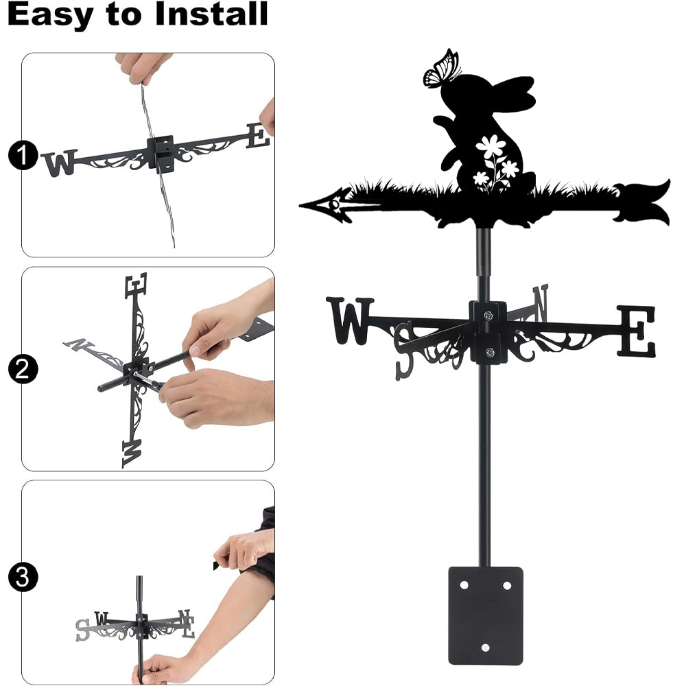 💕Creative design: This Weathervane is made of high-quality Stainless Steel. With stylish straight lines and satin black finishes. This anti-rust iron weather vane is decorated with exquisite patterns.