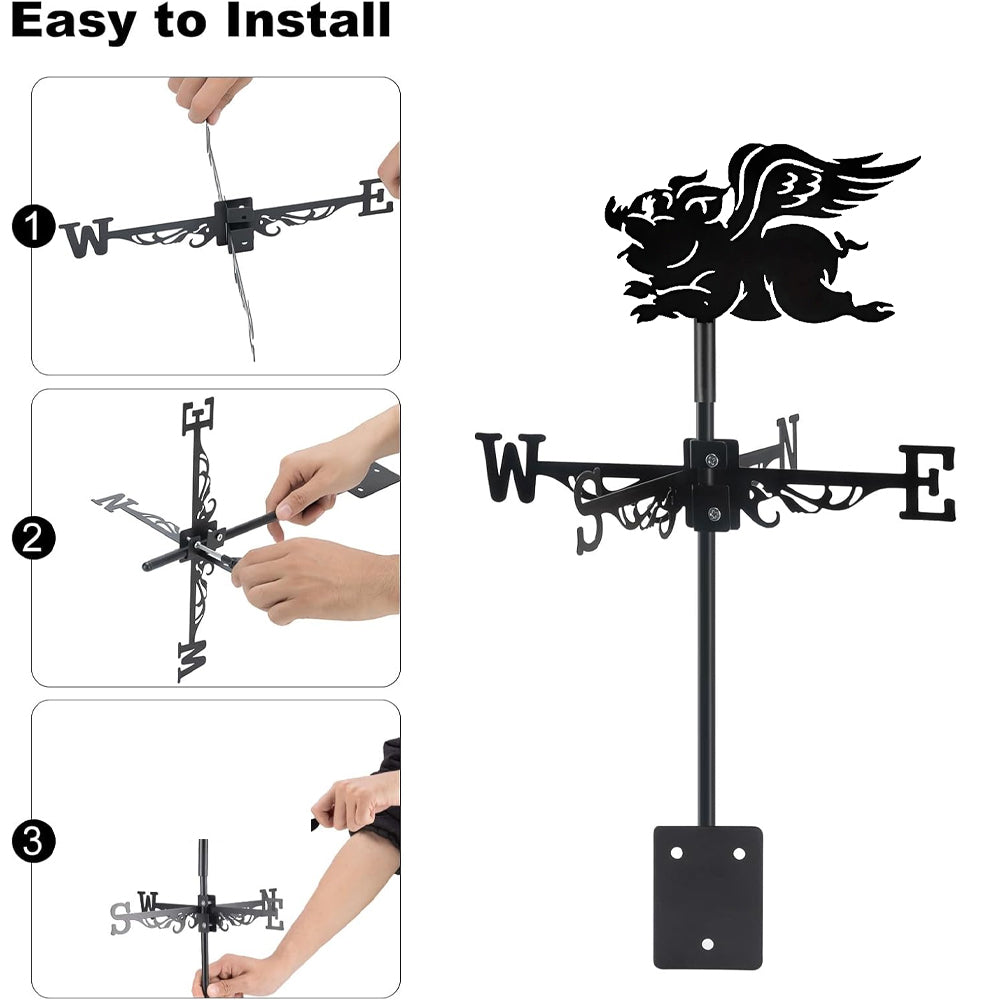 💕Creative design: This Weathervane is made of high-quality Stainless Steel. With stylish straight lines and satin black finishes. This anti-rust iron weather vane is decorated with exquisite patterns.
