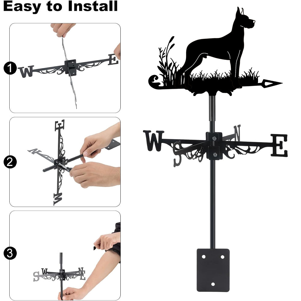 💕Creative design: This Weathervane is made of high-quality Stainless Steel. With stylish straight lines and satin black finishes. This anti-rust iron weather vane is decorated with exquisite patterns.