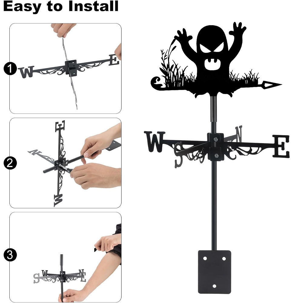 💕Creative design: This Weathervane is made of high-quality Stainless Steel. With stylish straight lines and satin black finishes. This anti-rust iron weather vane is decorated with exquisite patterns.