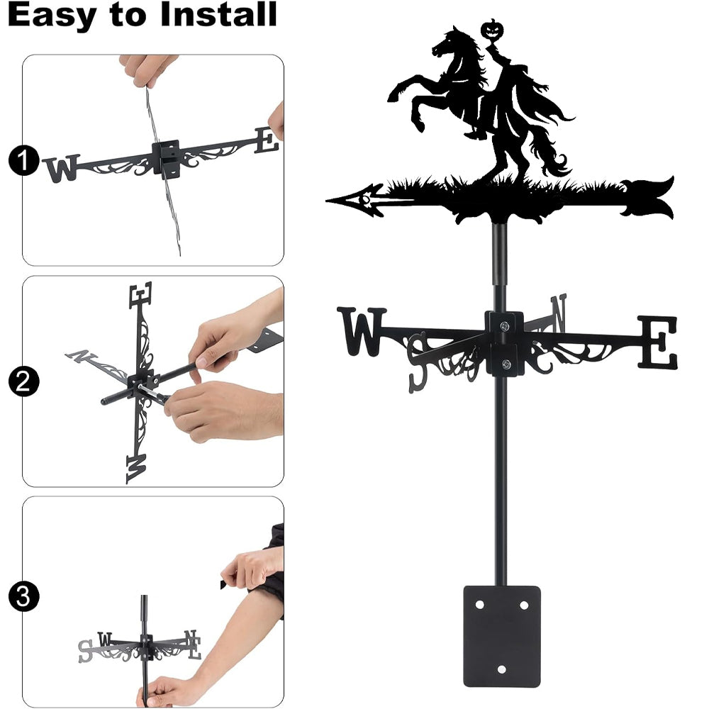 💕Creative design: This Weathervane is made of high-quality Stainless Steel. With stylish straight lines and satin black finishes. This anti-rust iron weather vane is decorated with exquisite patterns.