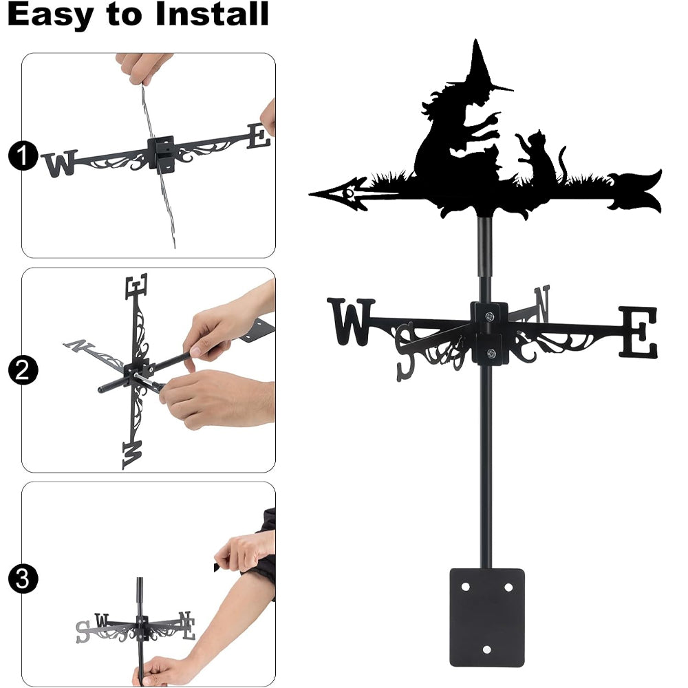 💕Creative design: This Weathervane is made of high-quality Stainless Steel. With stylish straight lines and satin black finishes. This anti-rust iron weather vane is decorated with exquisite patterns.