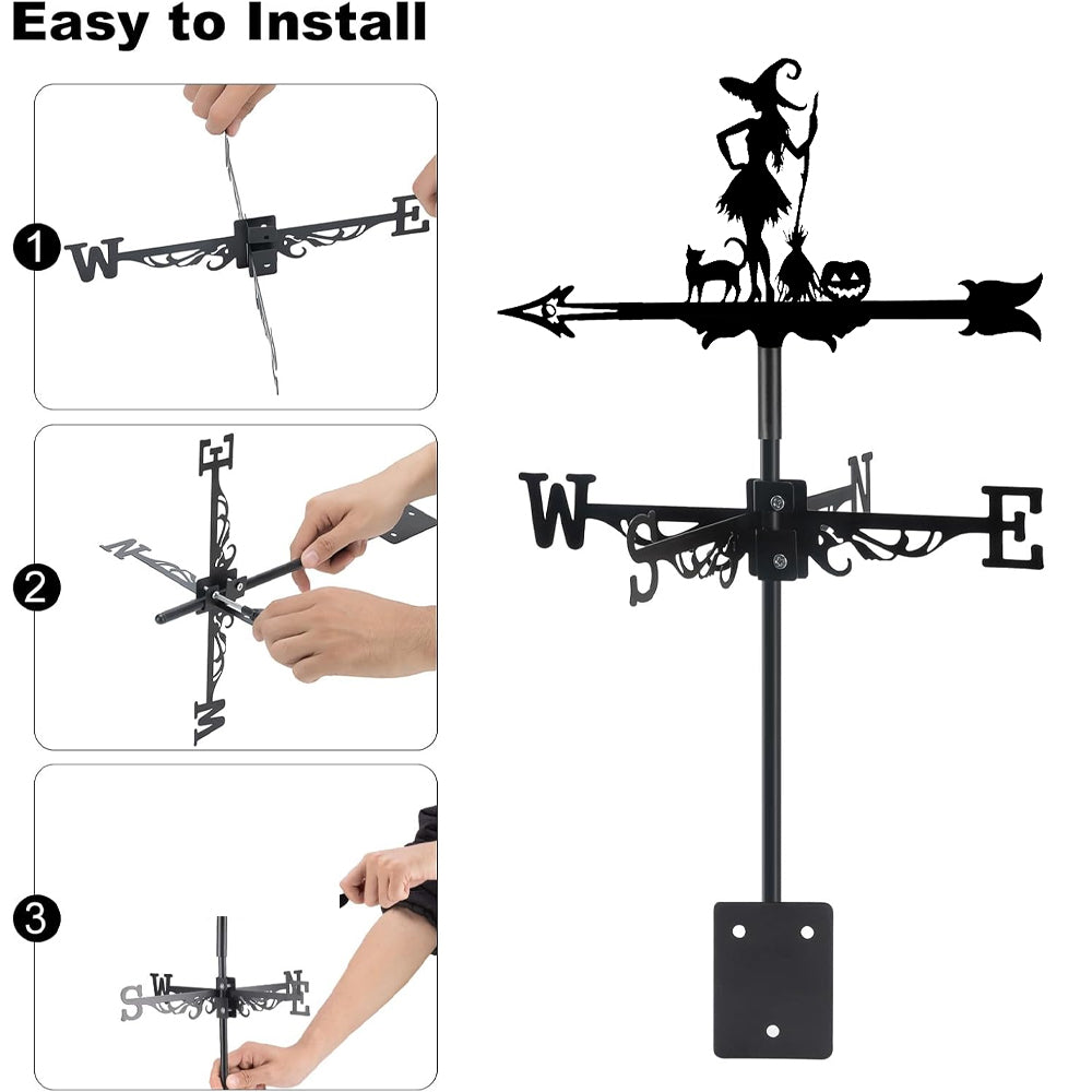 💕Creative design: This Weathervane is made of high-quality Stainless Steel. With stylish straight lines and satin black finishes. This anti-rust iron weather vane is decorated with exquisite patterns.