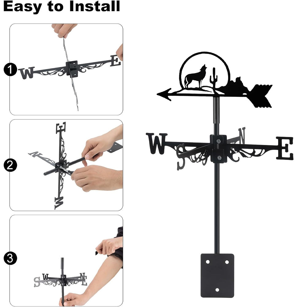 💕Creative design: This Weathervane is made of high-quality Stainless Steel. With stylish straight lines and satin black finishes. This anti-rust iron weather vane is decorated with exquisite patterns.
