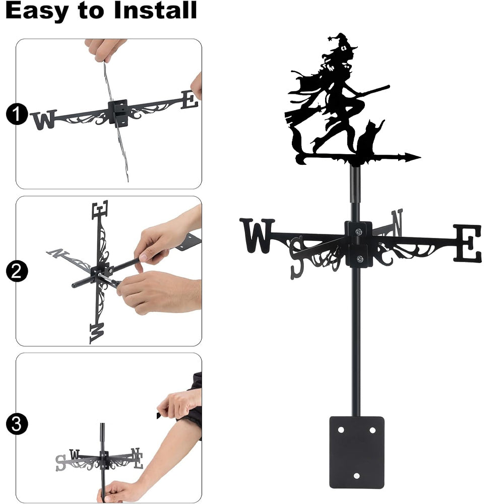 💕Creative design: This Weathervane is made of high-quality Stainless Steel. With stylish straight lines and satin black finishes. This anti-rust iron weather vane is decorated with exquisite patterns.