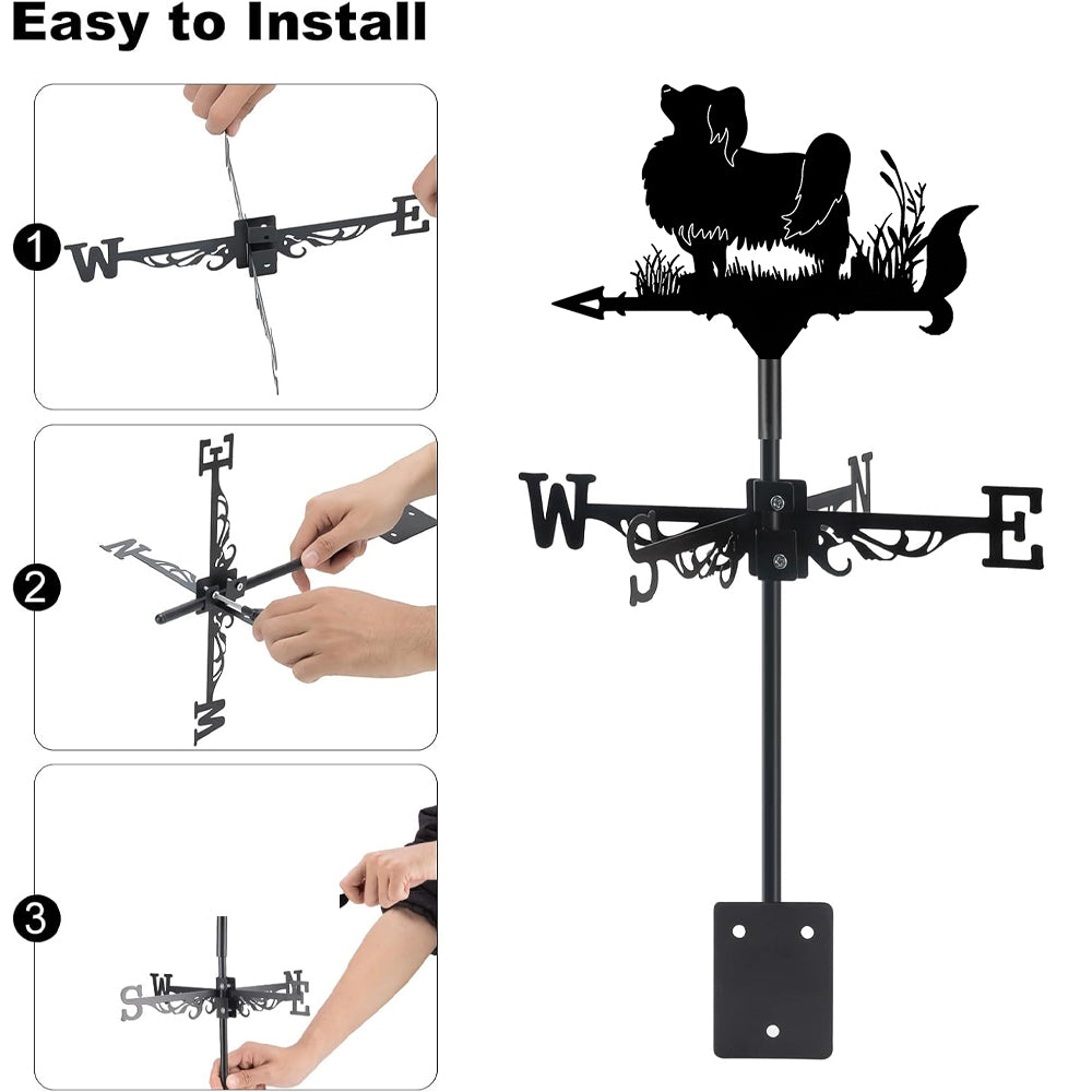 💕Creative design: This Weathervane is made of high-quality Stainless Steel. With stylish straight lines and satin black finishes. This anti-rust iron weather vane is decorated with exquisite patterns.