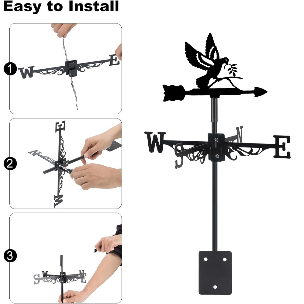 💕Creative design: This Weathervane is made of high-quality Stainless Steel. With stylish straight lines and satin black finishes. This anti-rust iron weather vane is decorated with exquisite patterns.