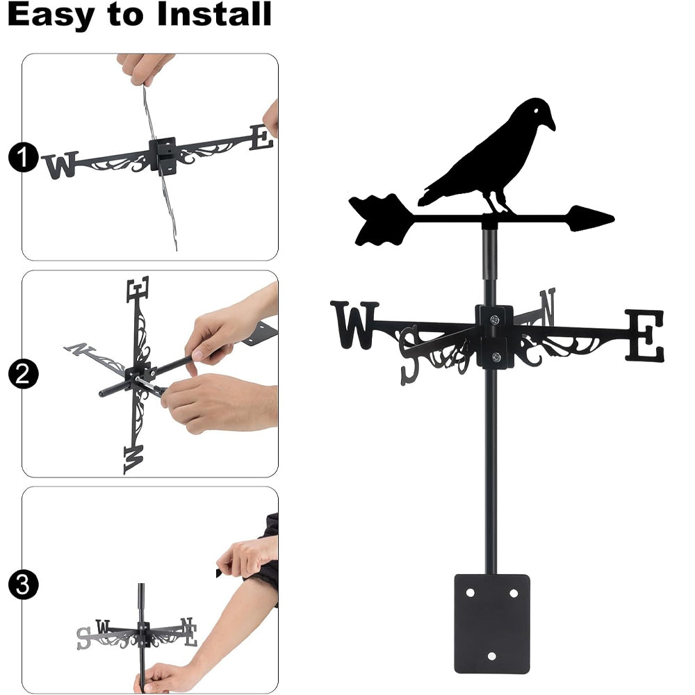 💕Creative design: This Weathervane is made of high-quality Stainless Steel. With stylish straight lines and satin black finishes. This anti-rust iron weather vane is decorated with exquisite patterns.
