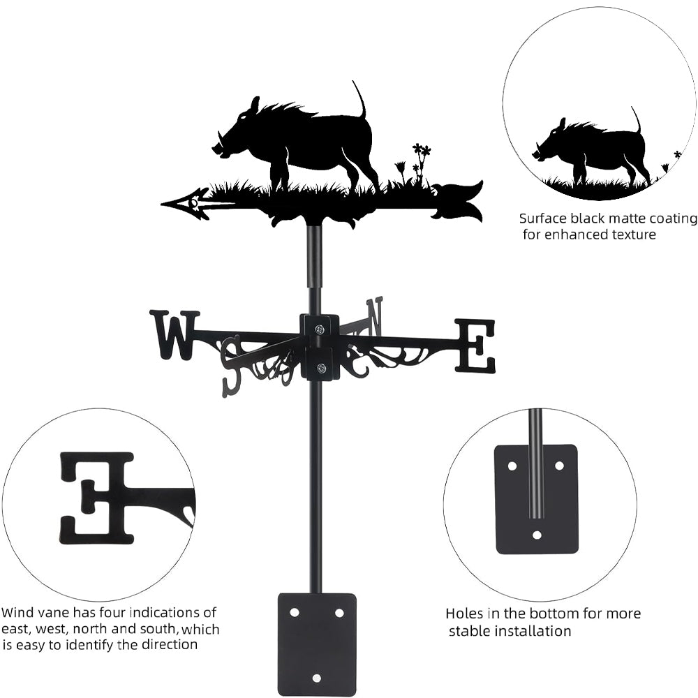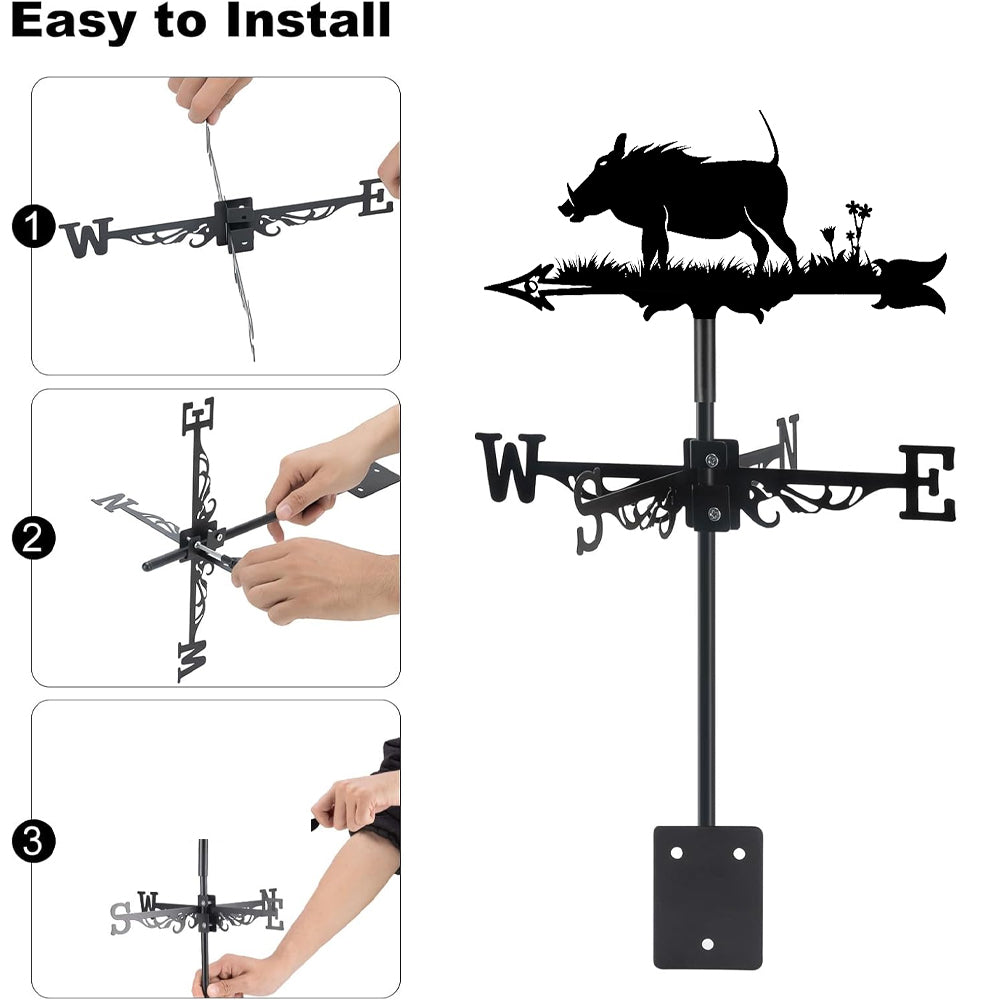 💕Creative design: This Weathervane is made of high-quality Stainless Steel. With stylish straight lines and satin black finishes. This anti-rust iron weather vane is decorated with exquisite patterns.