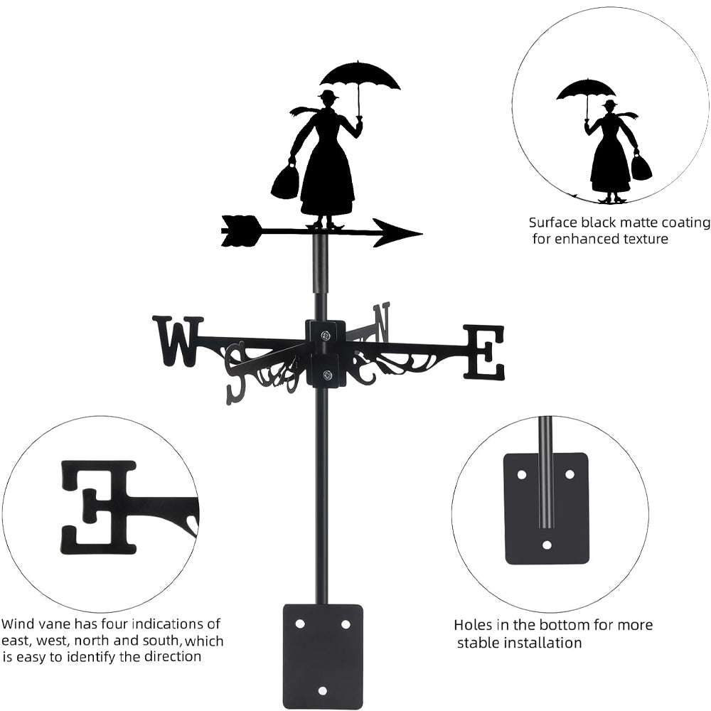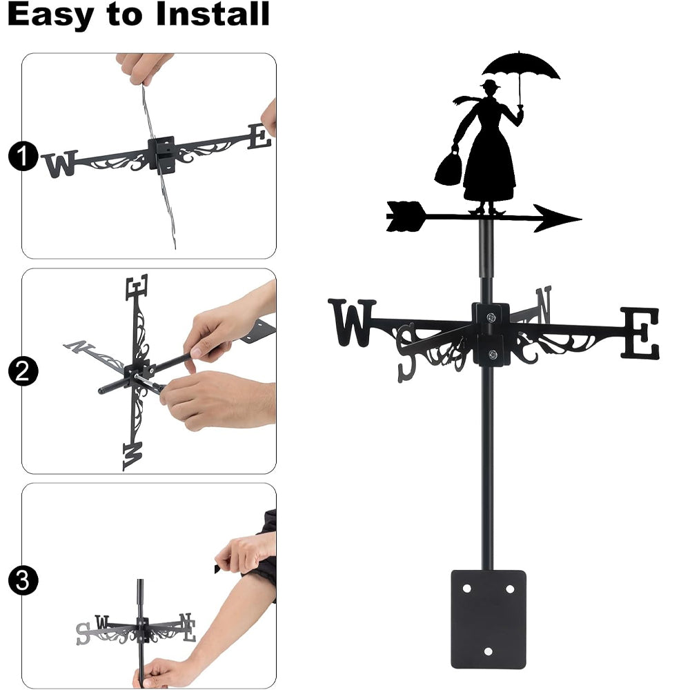 ☔ Material & Durability:Crafted from high-quality iron and finished with a premium powder-coated coating, this weathervane is made for long-term outdoor use. The protective finish helps resist rust, corrosion, and surface wear, keeping the metal looking clean and refined through changing seasons.