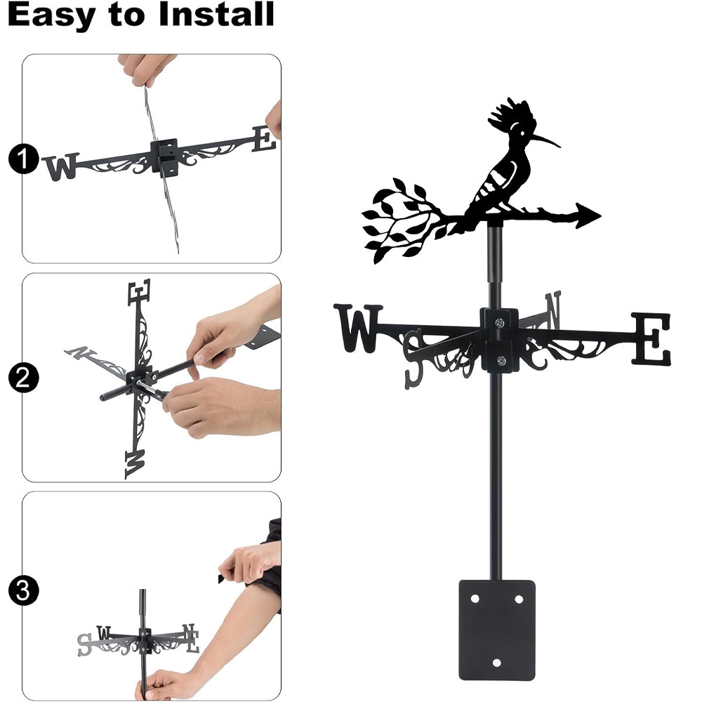 💕Creative design: This Weathervane is made of high-quality Stainless Steel. With stylish straight lines and satin black finishes. This anti-rust iron weather vane is decorated with exquisite patterns.