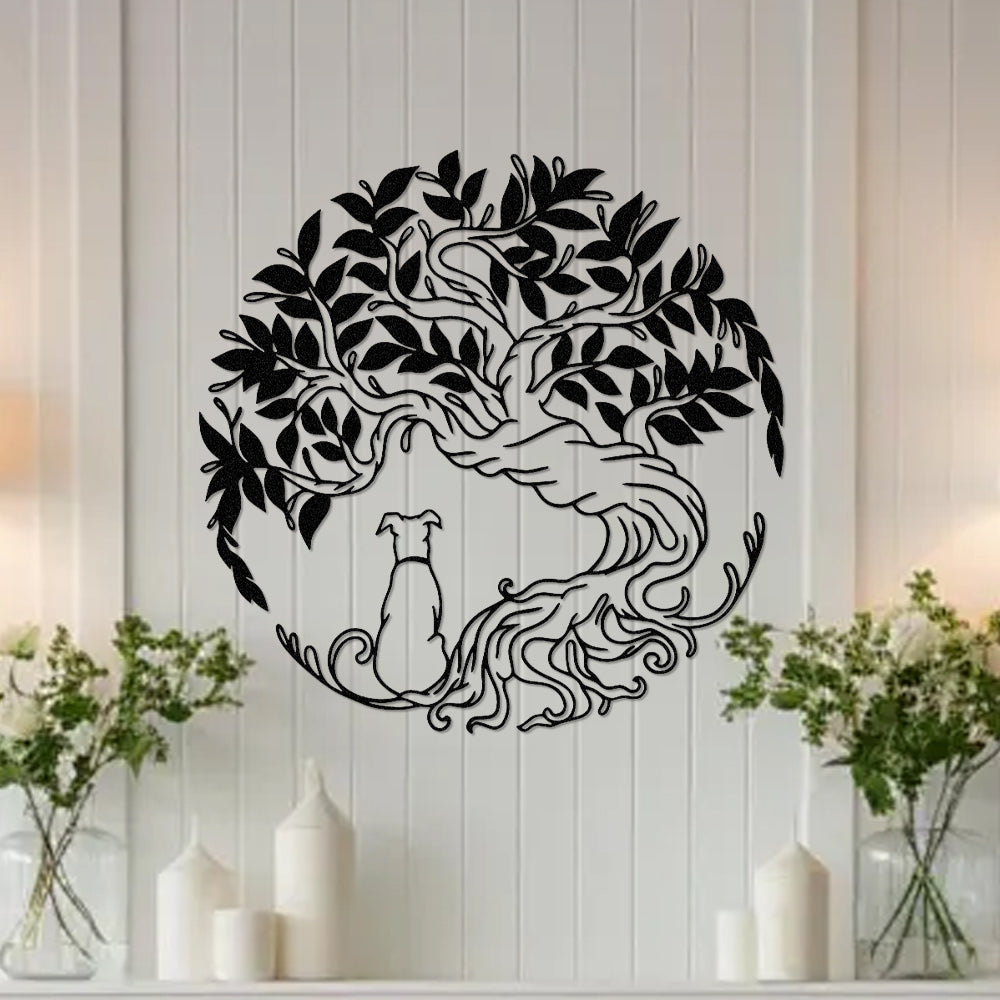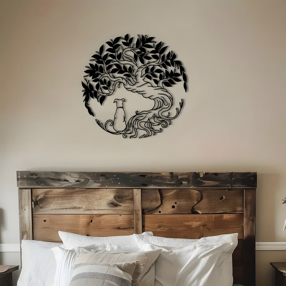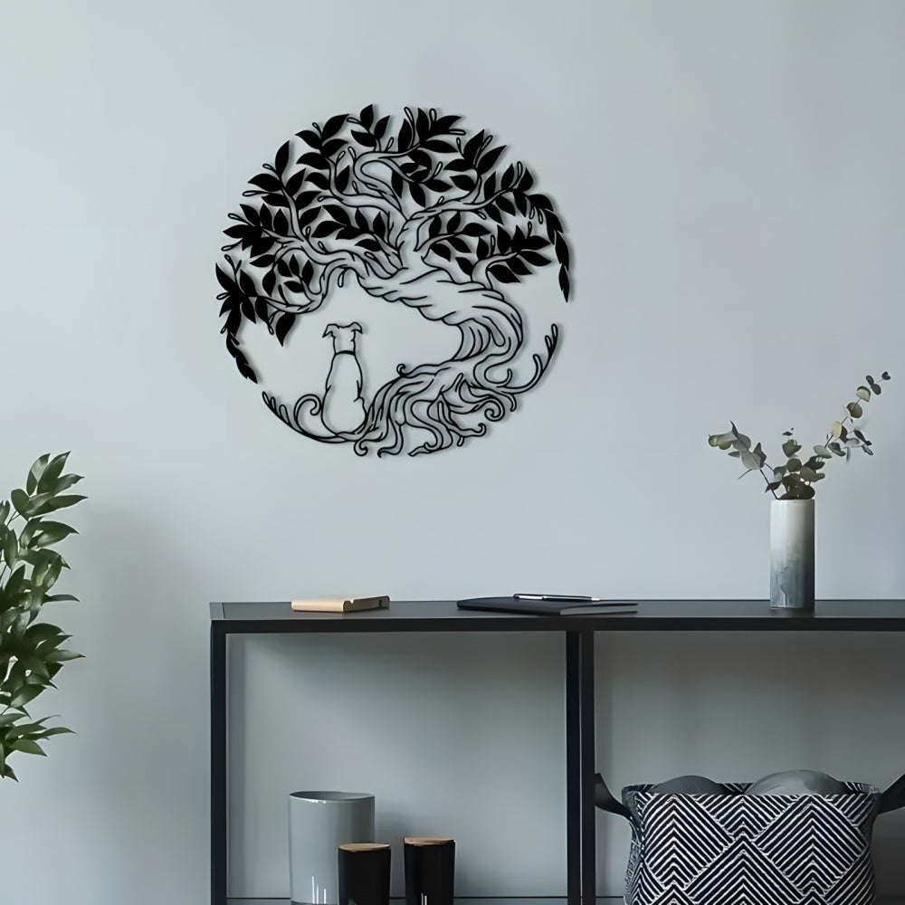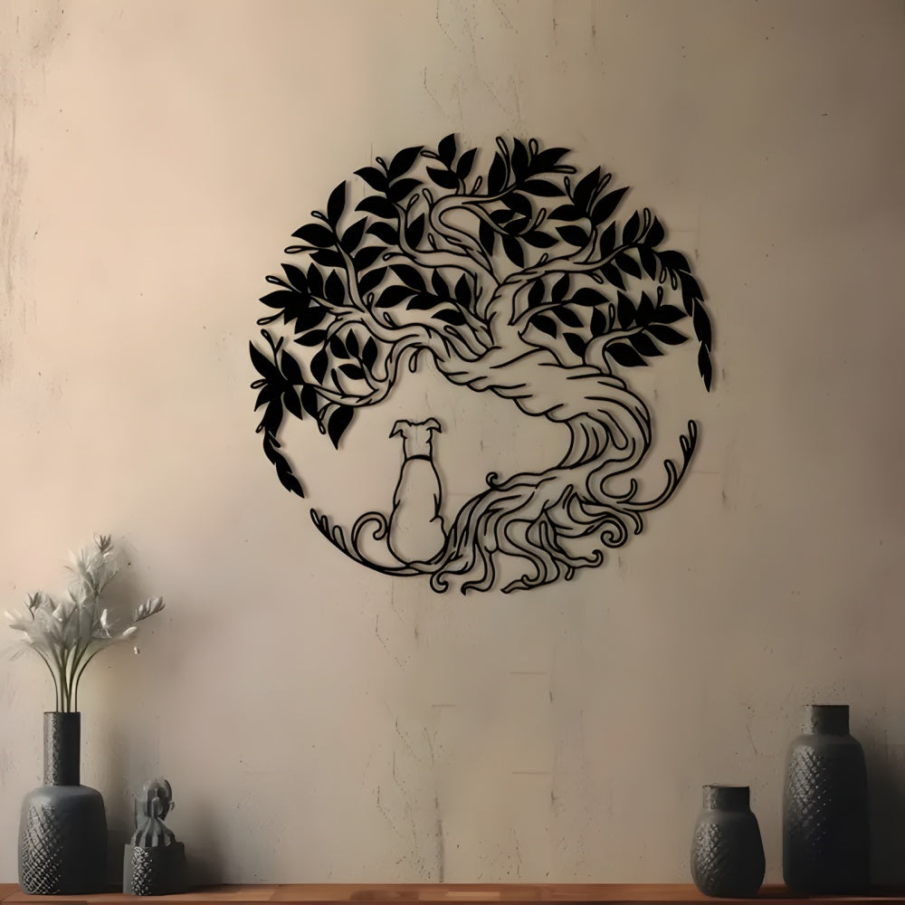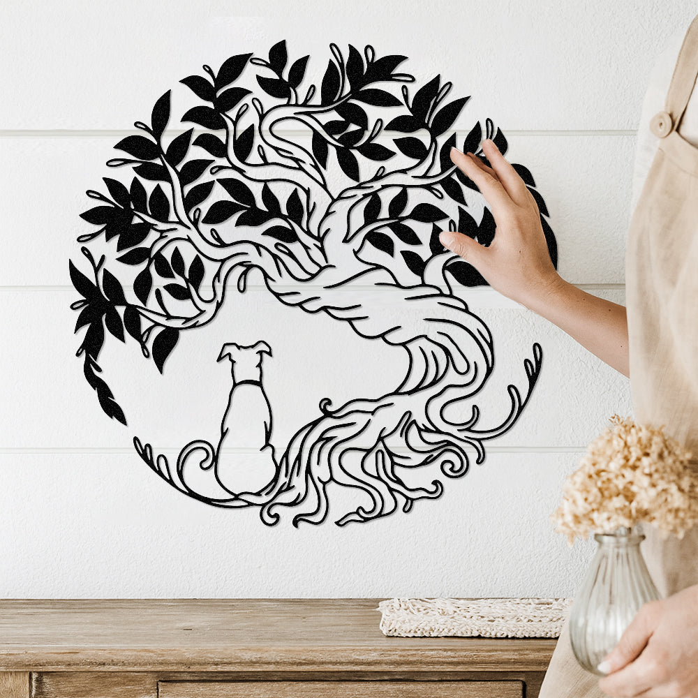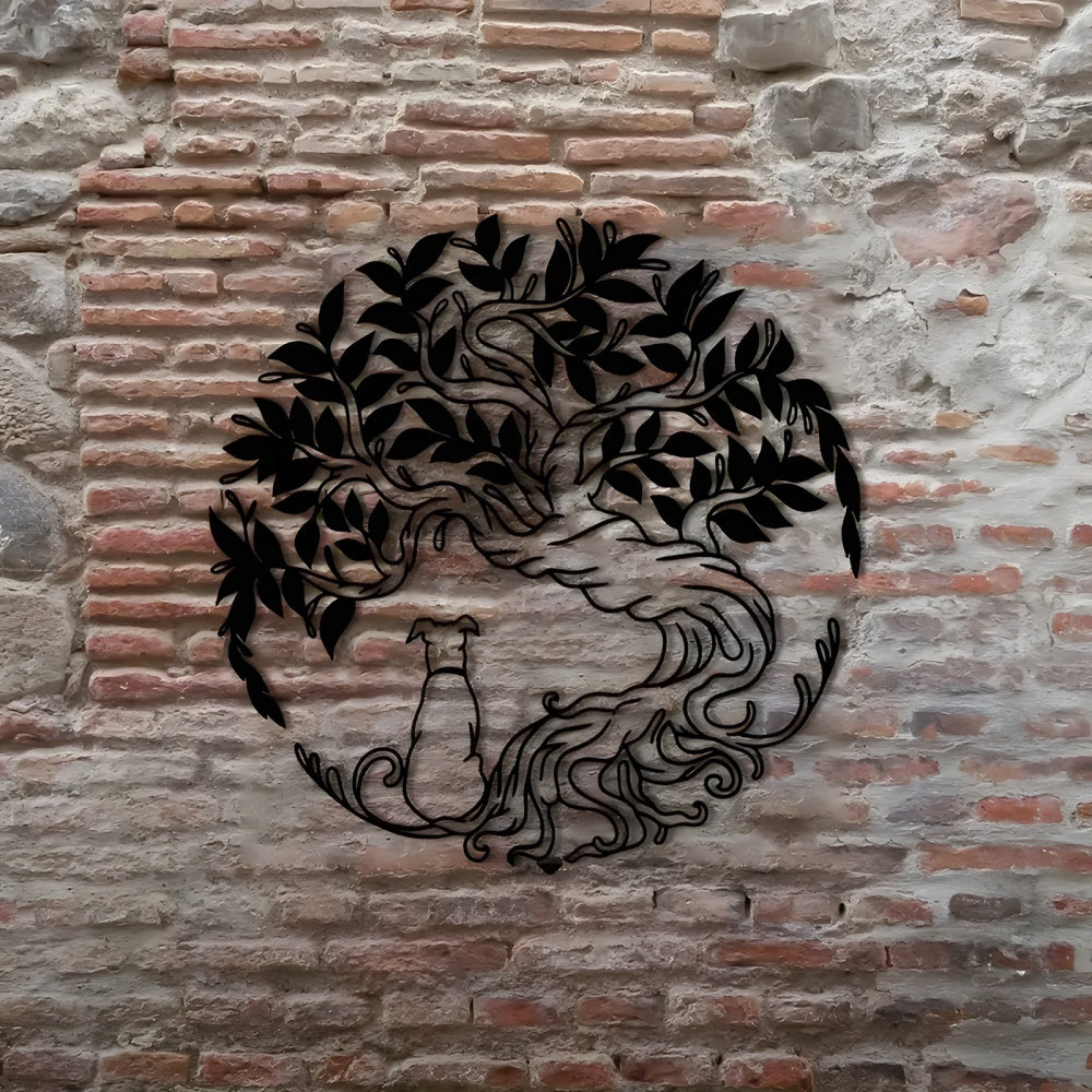Iron Tree Of Life and Dog Metal Wall Art Decoration