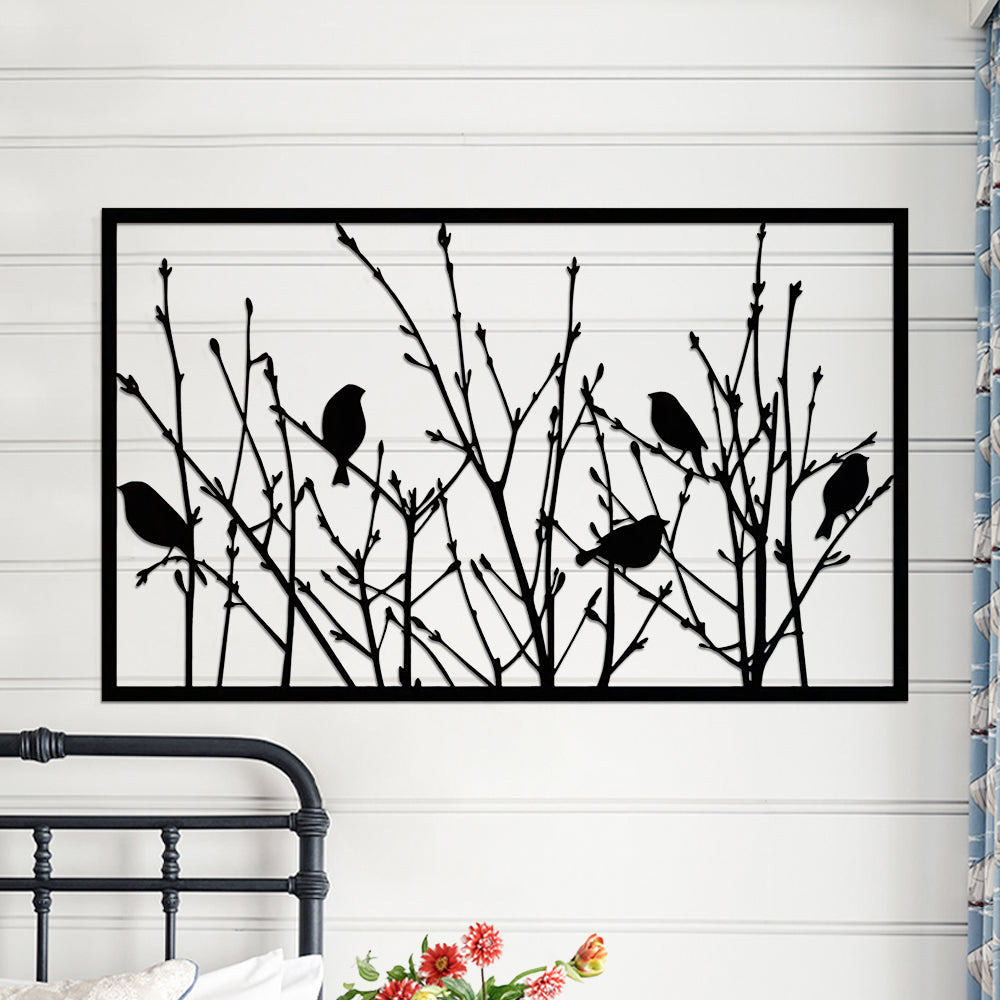 Bird-themed Metal Sign Tree Metal Wall Art Decoration
