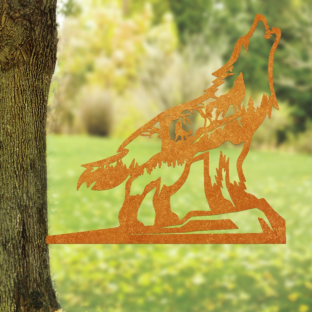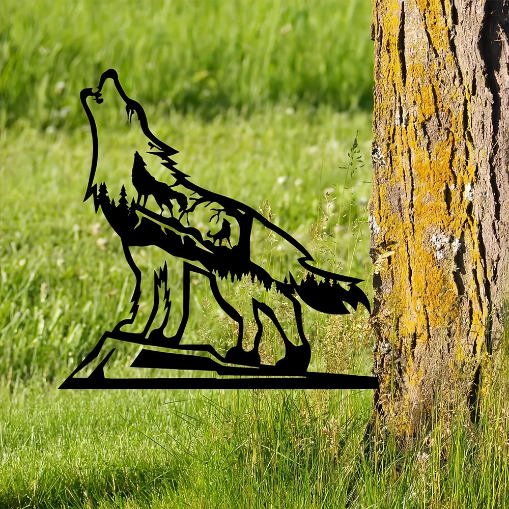 Wolf Metal Tree Decorations Outdoor Metal Garden Art