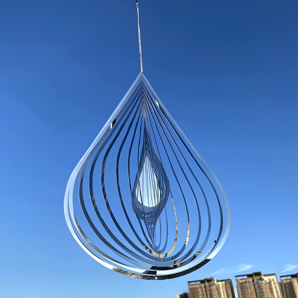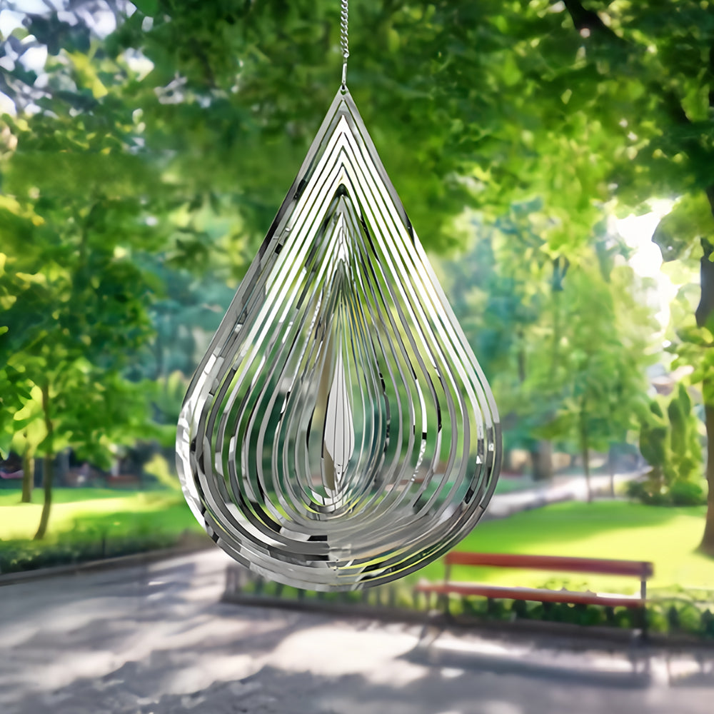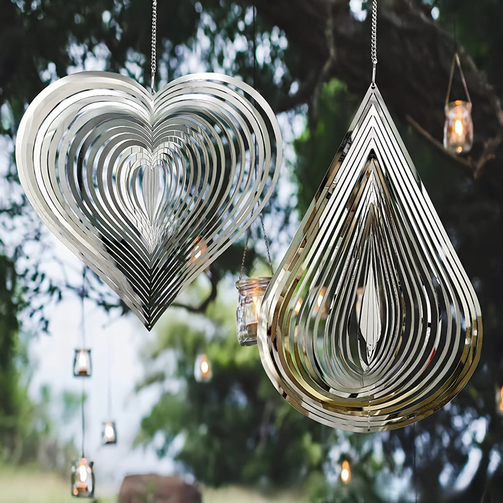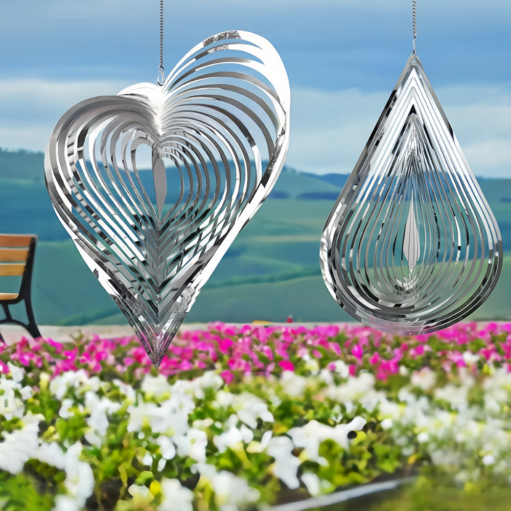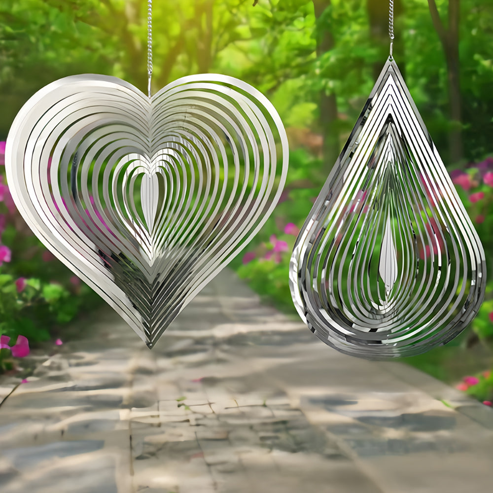 2PCS Drop Shaped and Heart Shaped Wind Spinner 3D Stainless Steel Wind Chime Crop Bird Repeller