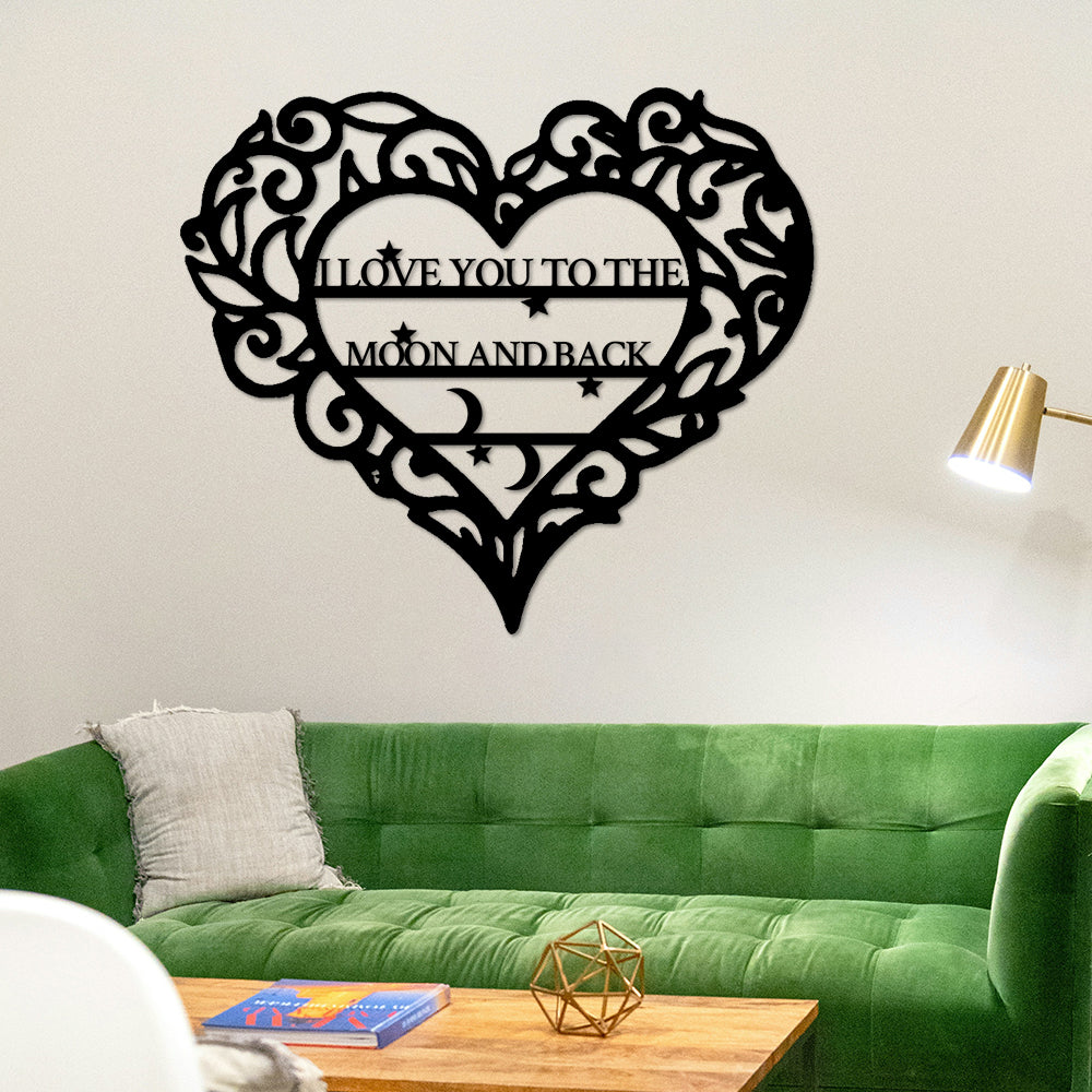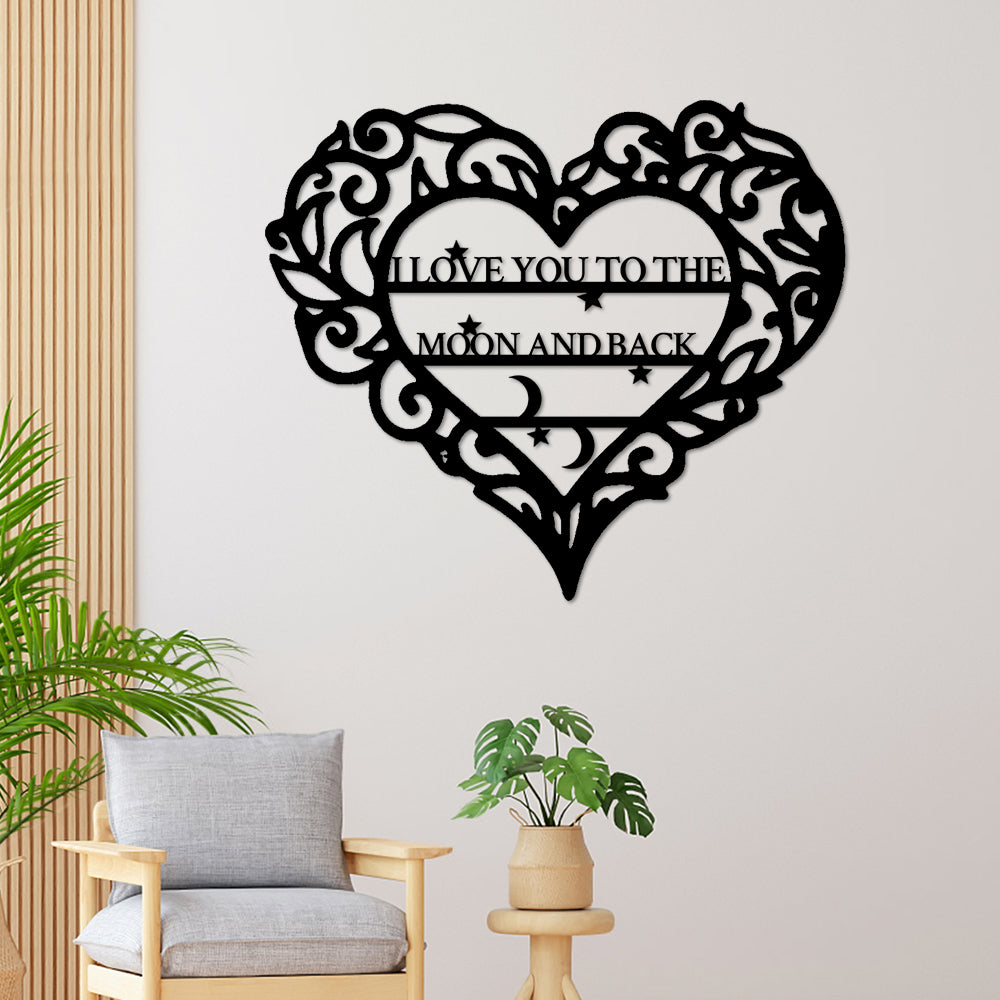 Heart and I Love You To The Monn And Back Metal Wall Art Decoration