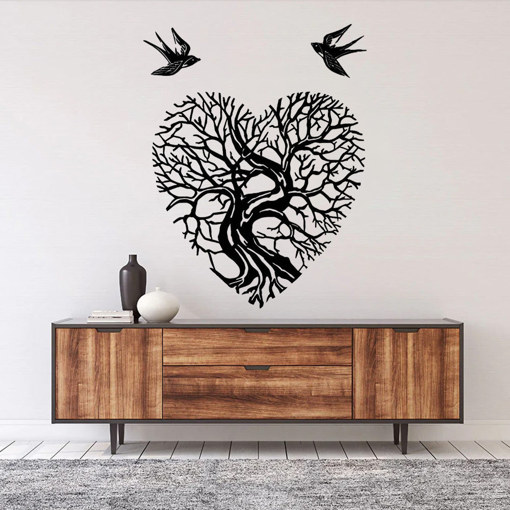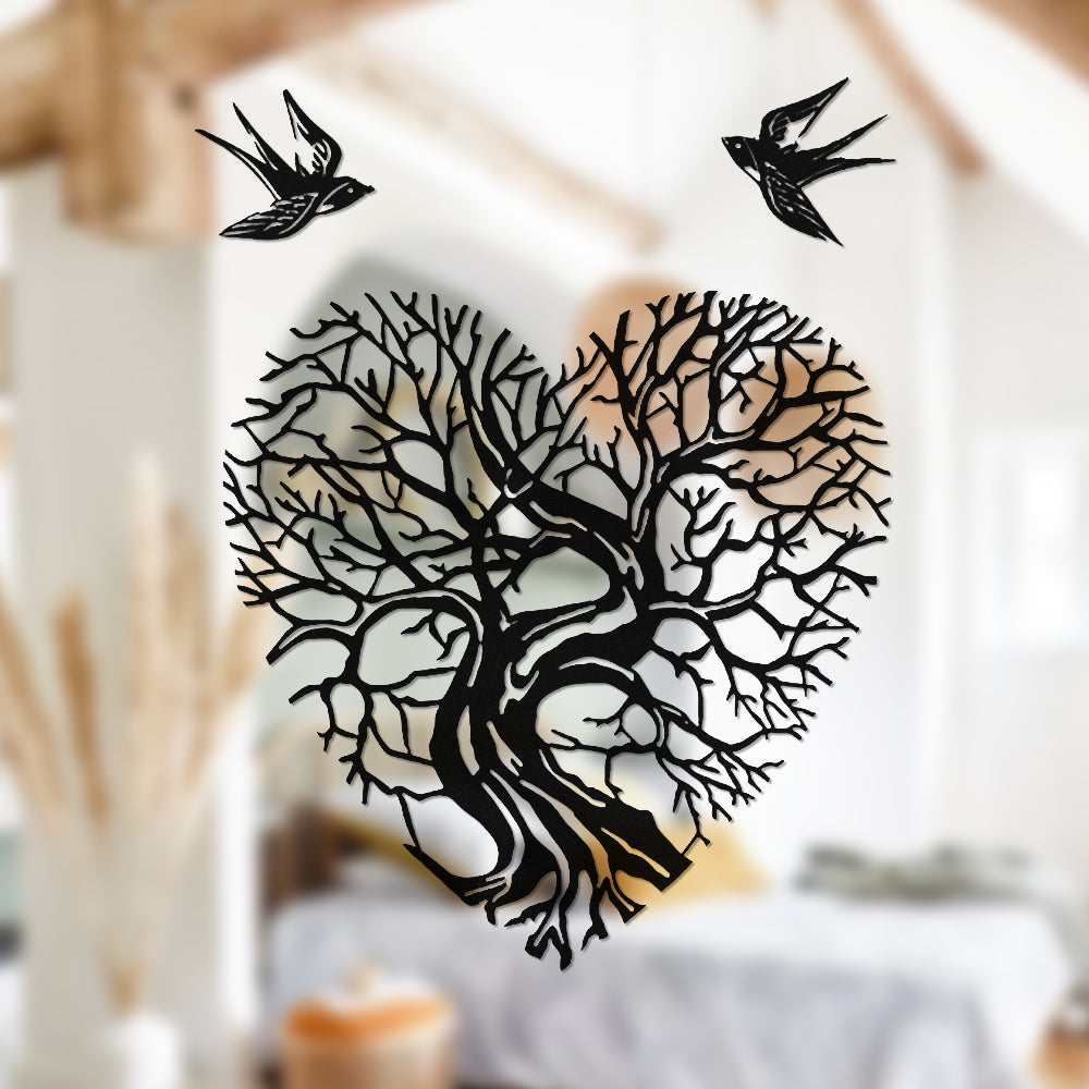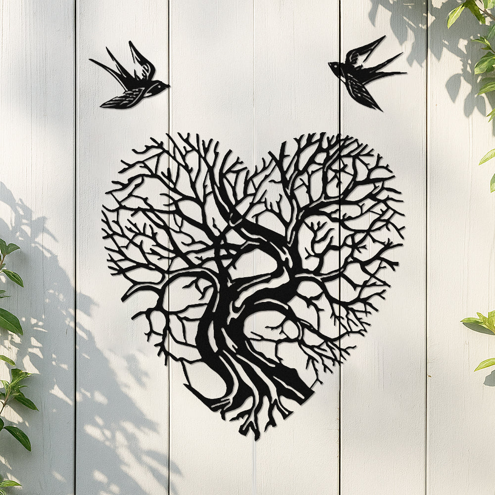 Birds and Heart-Shaped Tree of Life Metal Wall Art