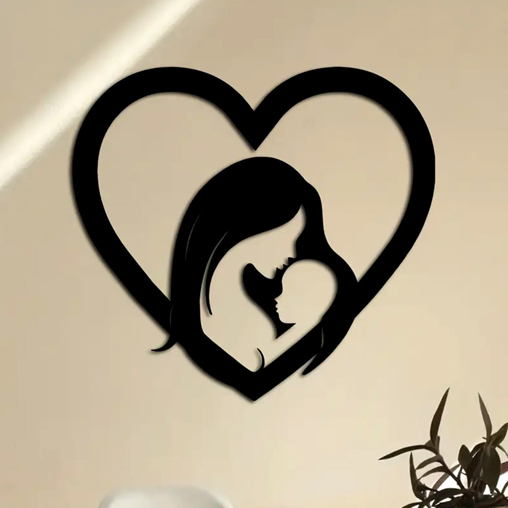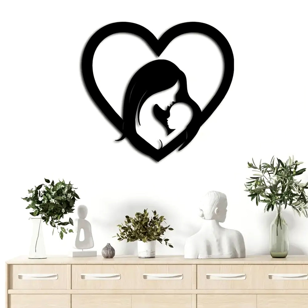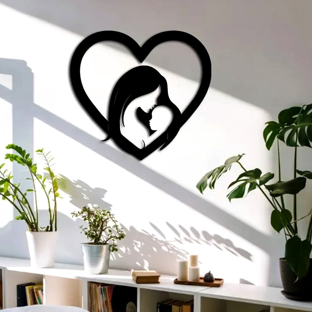 Modern Metal Love Heart Mother and Youngsters Metal Wall Art Decoration