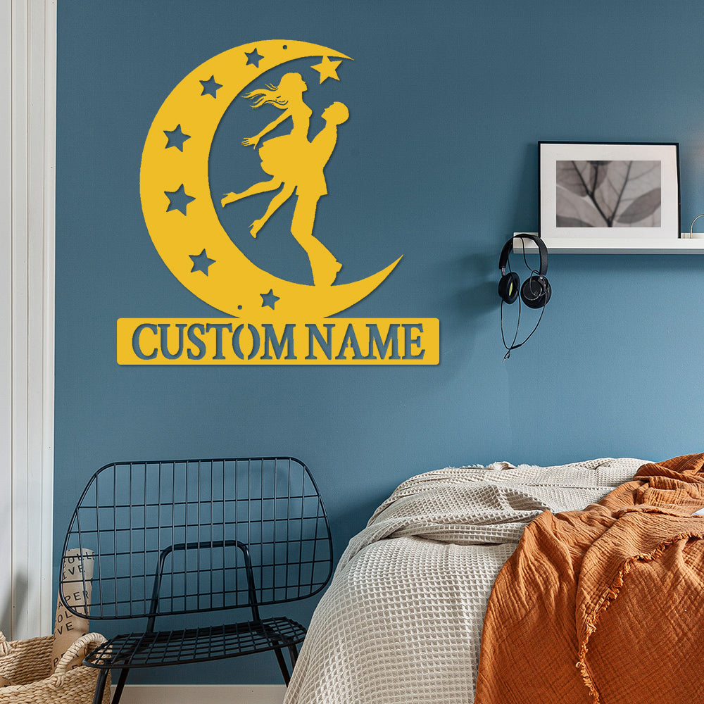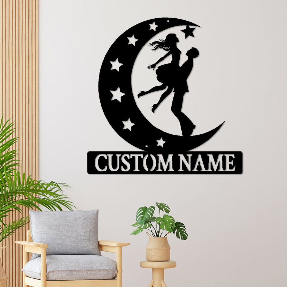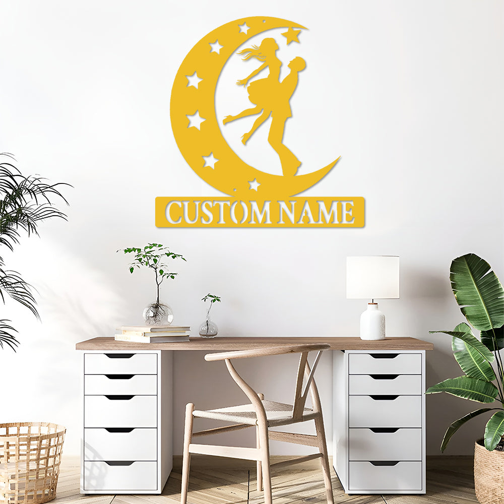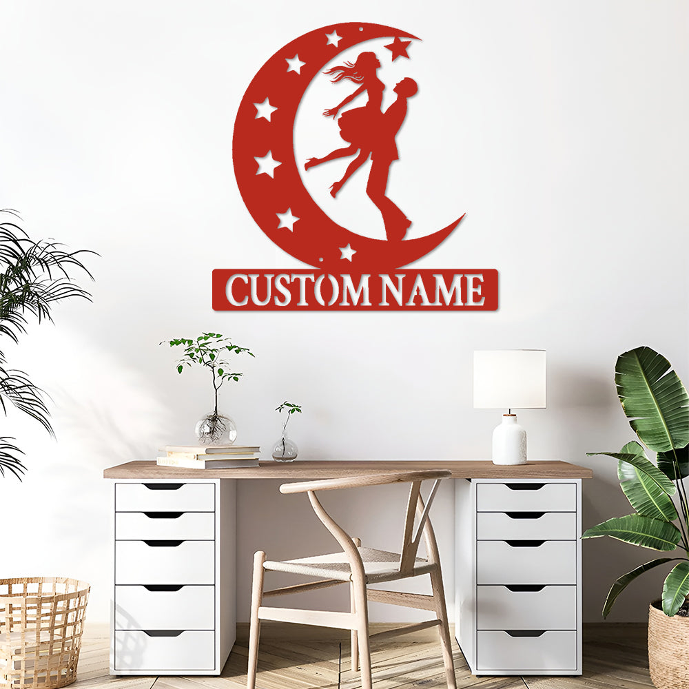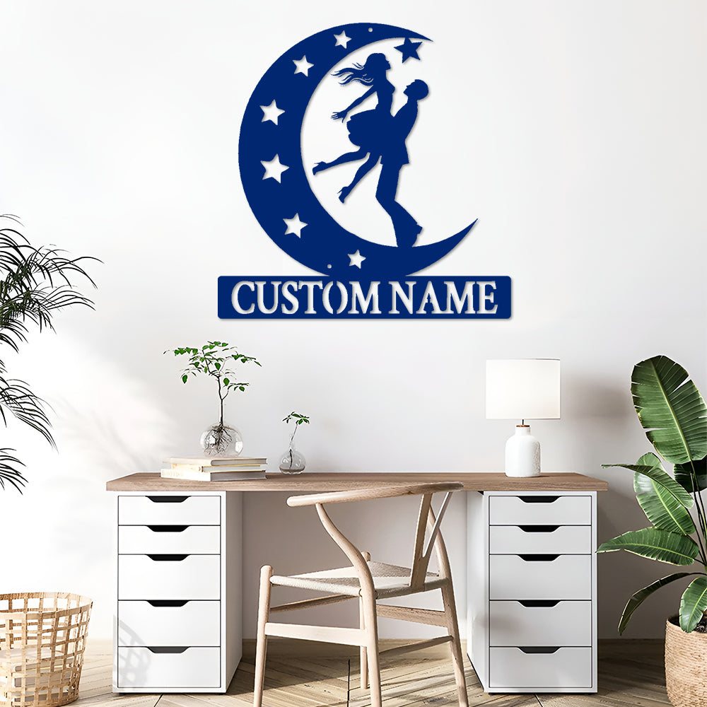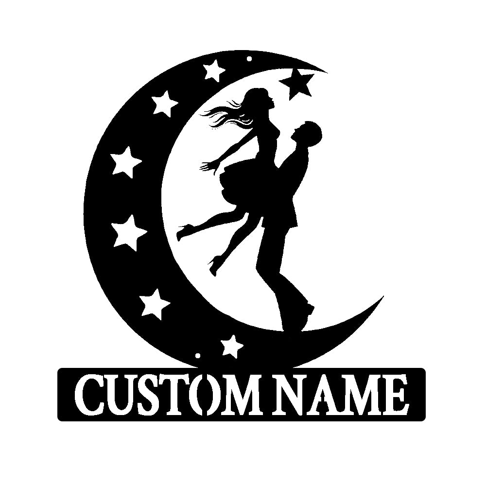 Personalized Custom Couple and Moon Love Metal Wall Art Decoration