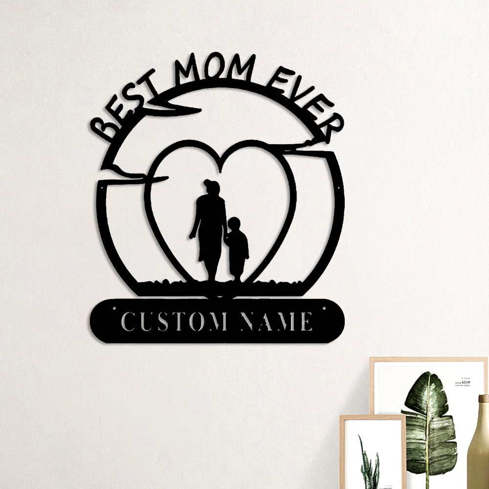 Personalized Custom Heart Design Best Mom Ever Metal Wall Art Decoration