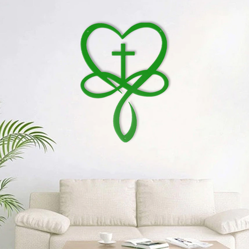 St Patrick's Day Shamrock with Heart Sign Metal Wall Art Decoration