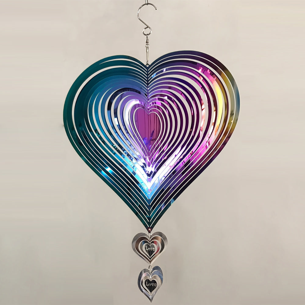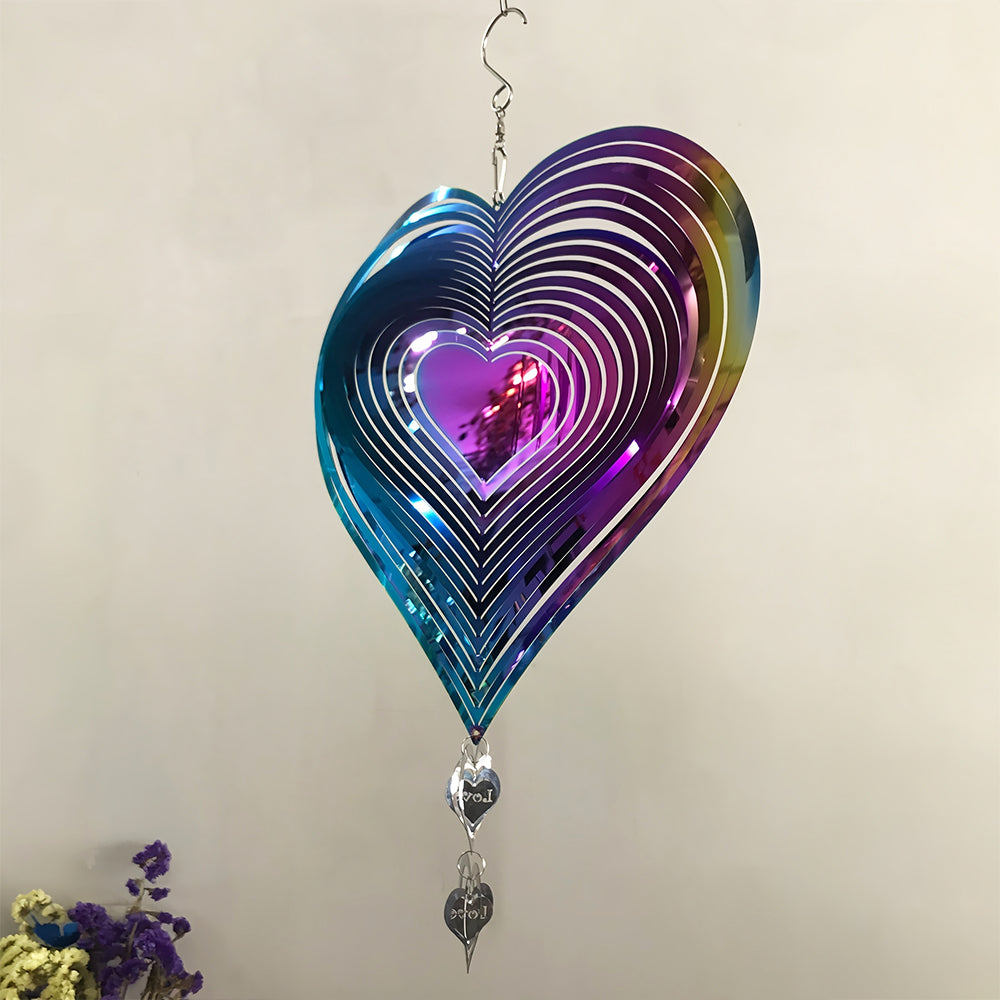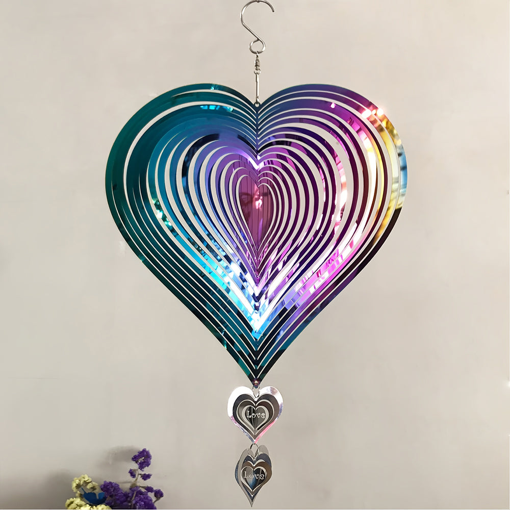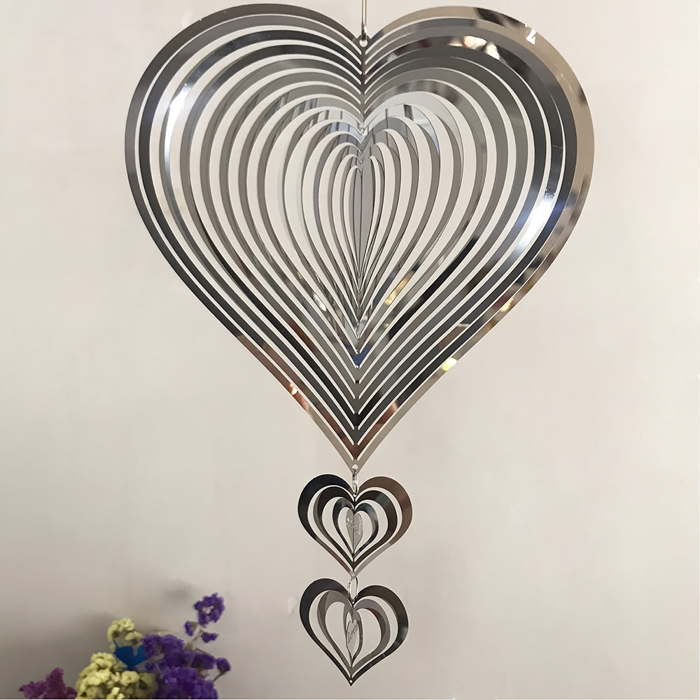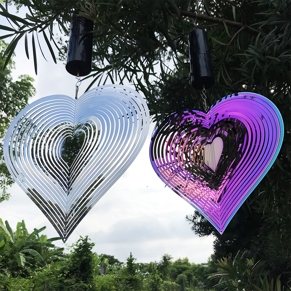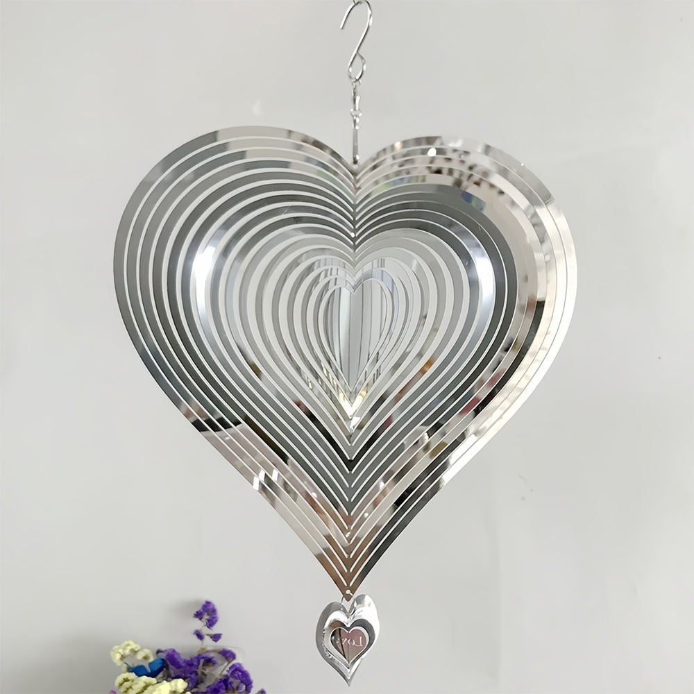 Heart-Shaped Wind Spinner 3D Stainless Steel Wind Chime Crop Bird Repeller