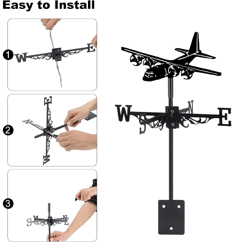💕Creative design: This Weathervane is made of high-quality Stainless Steel. With stylish straight lines and satin black finishes. This anti-rust iron weather vane is decorated with exquisite patterns.