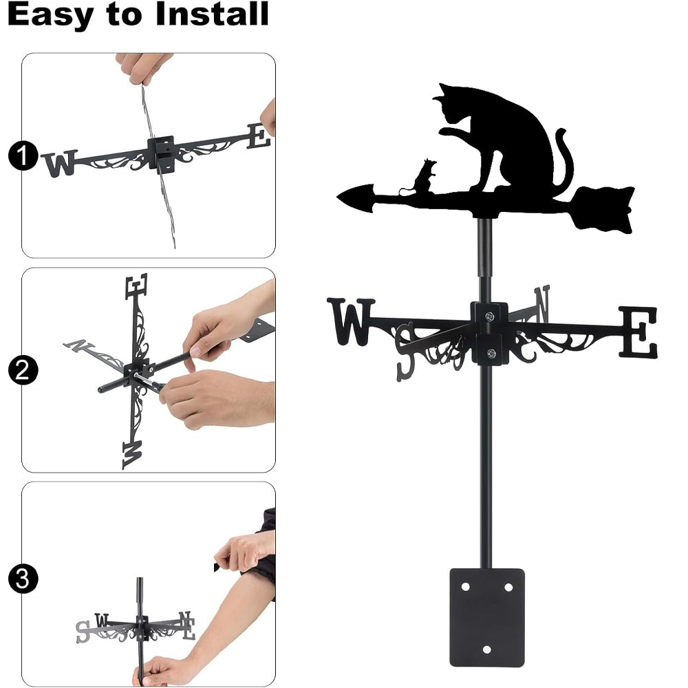 💕Creative design: This Weathervane is made of high-quality Stainless Steel. With stylish straight lines and satin black finishes. This anti-rust iron weather vane is decorated with exquisite patterns.