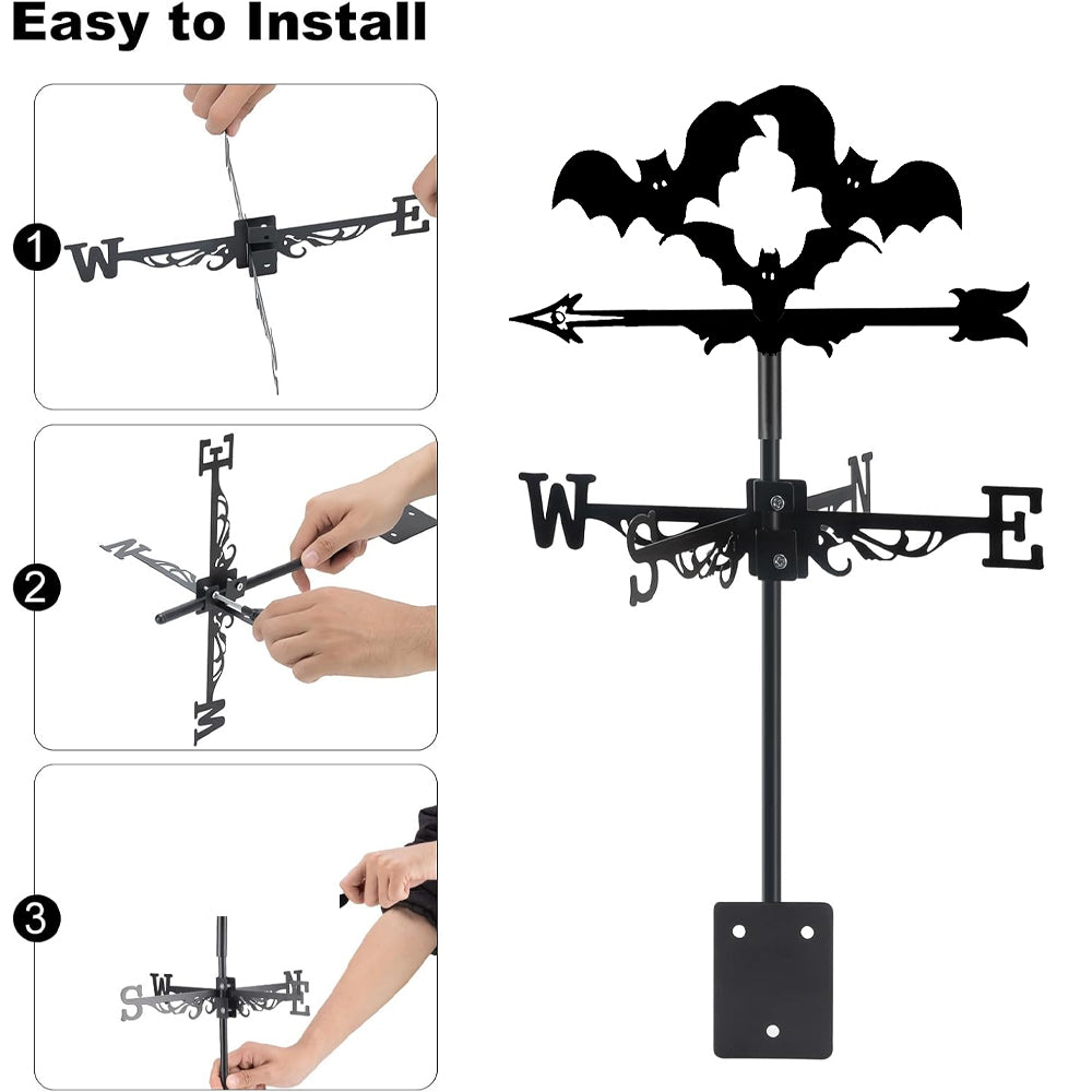 💕Creative design: This Weathervane is made of high-quality Stainless Steel. With stylish straight lines and satin black finishes. This anti-rust iron weather vane is decorated with exquisite patterns.