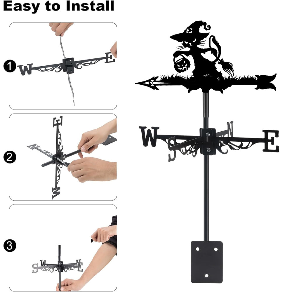 💕Creative design: This Weathervane is made of high-quality Stainless Steel. With stylish straight lines and satin black finishes. This anti-rust iron weather vane is decorated with exquisite patterns.