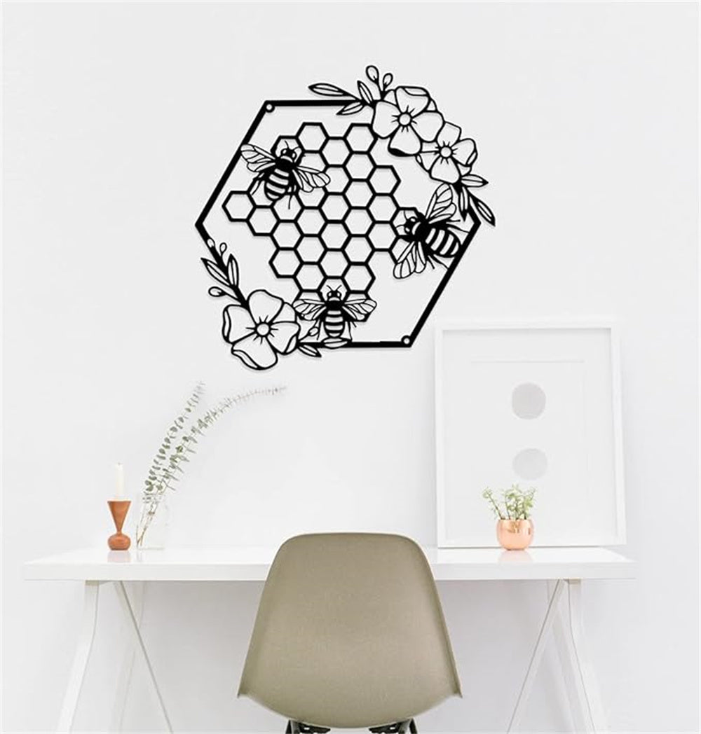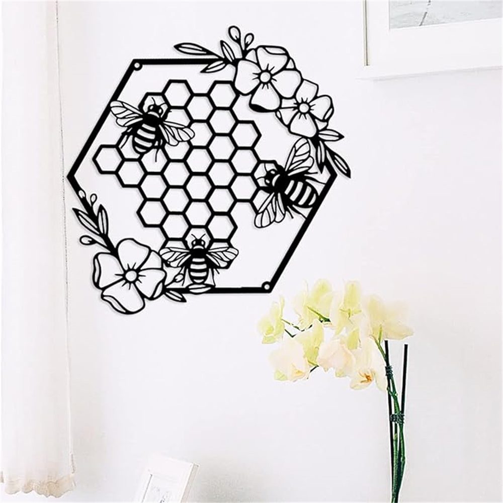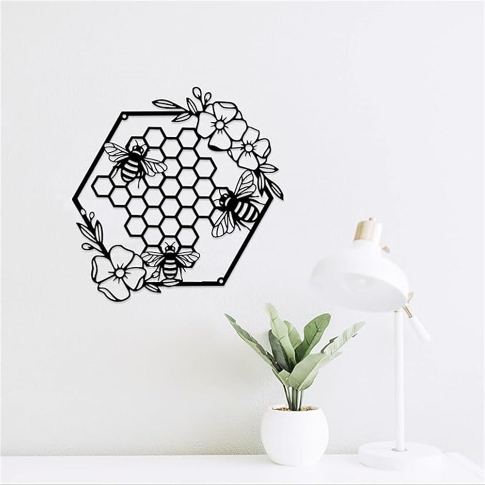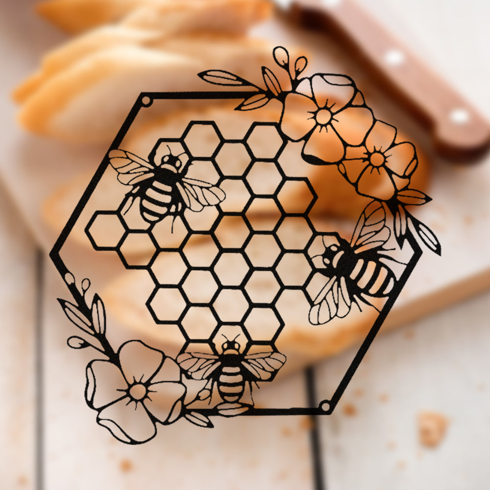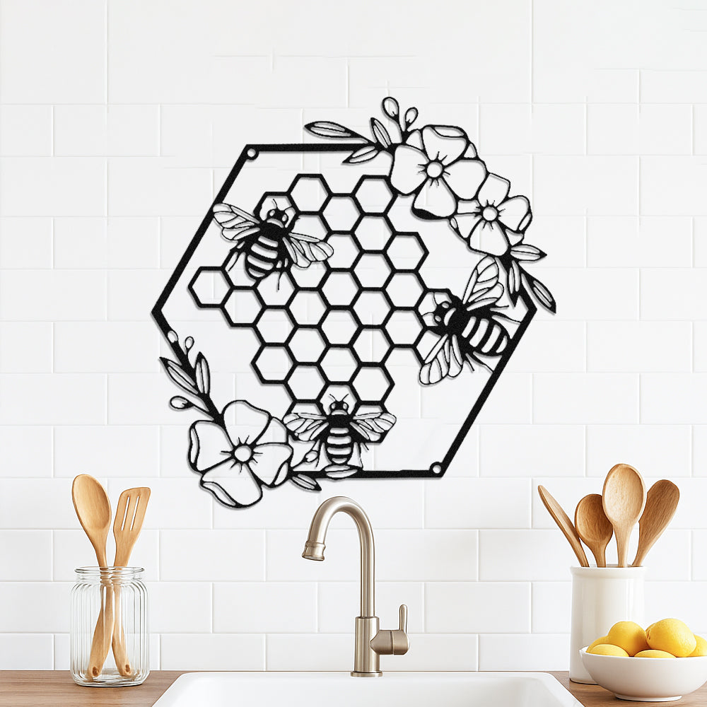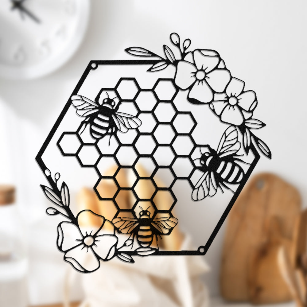 Honey Bees and Hives with Flowers Metal Wall Decor