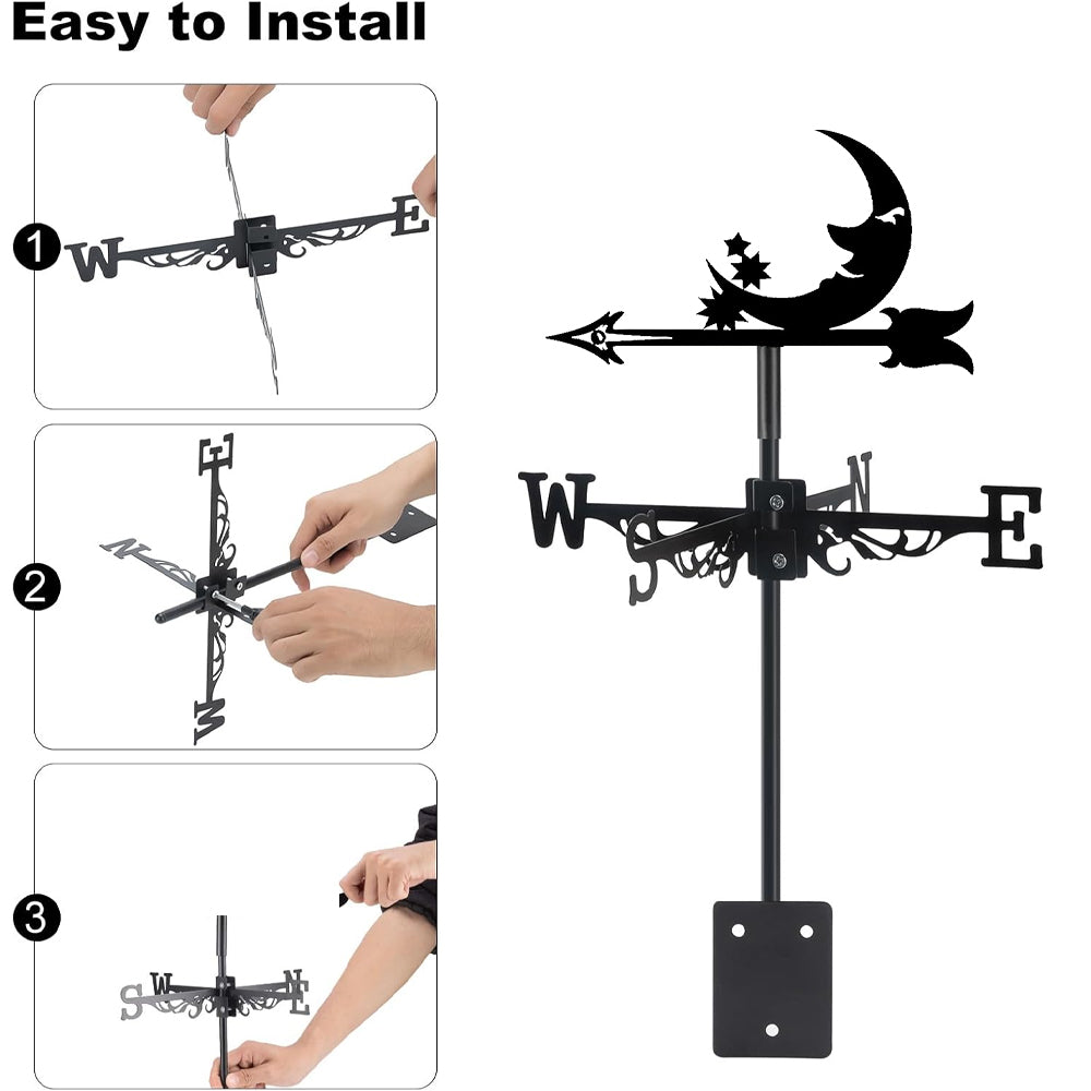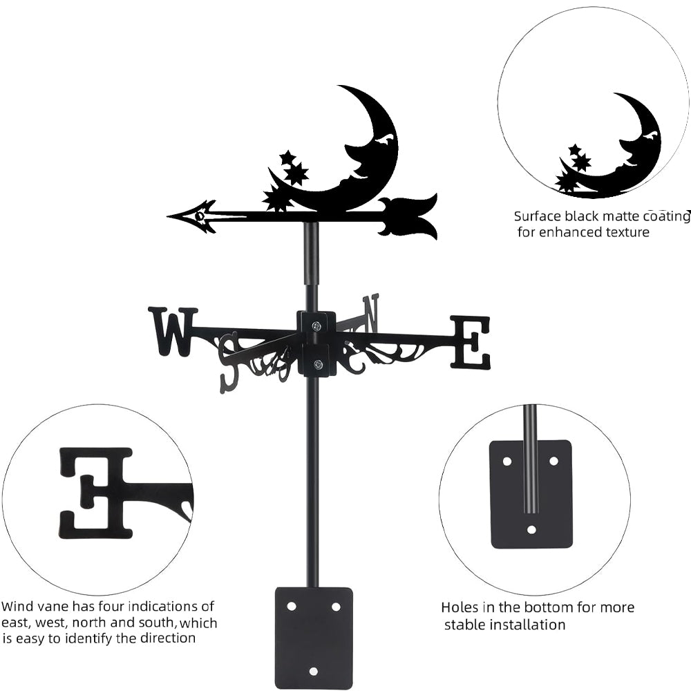 🌙Wind direction indicator: Our unique point contact design makes our wind vane rotate easily in the wind. The unique pivot point ensures smooth and trouble-free rotation. Indicates wind speed direction.