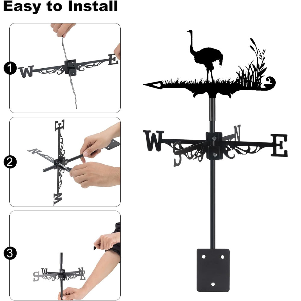 💕Creative design: This Weathervane is made of high-quality Stainless Steel. With stylish straight lines and satin black finishes. This anti-rust iron weather vane is decorated with exquisite patterns.