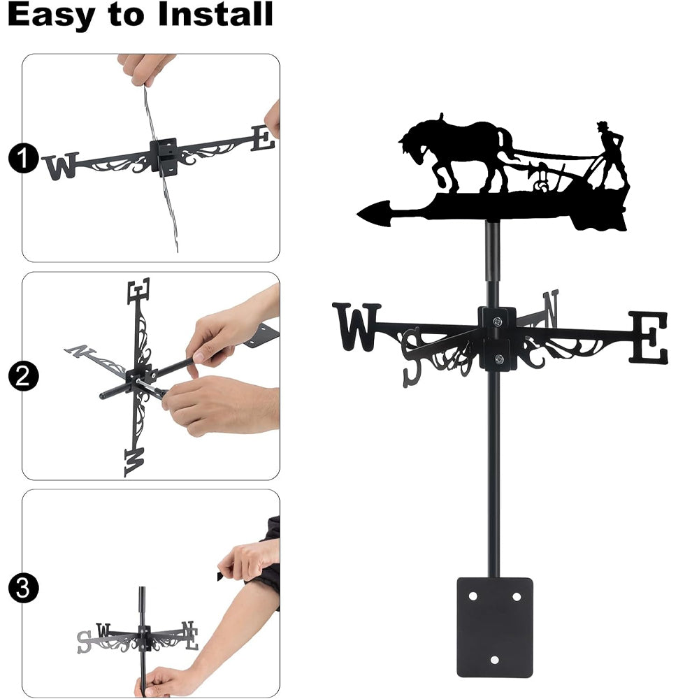 💕Creative design: This Weathervane is made of high-quality Stainless Steel. With stylish straight lines and satin black finishes. This anti-rust iron weather vane is decorated with exquisite patterns.