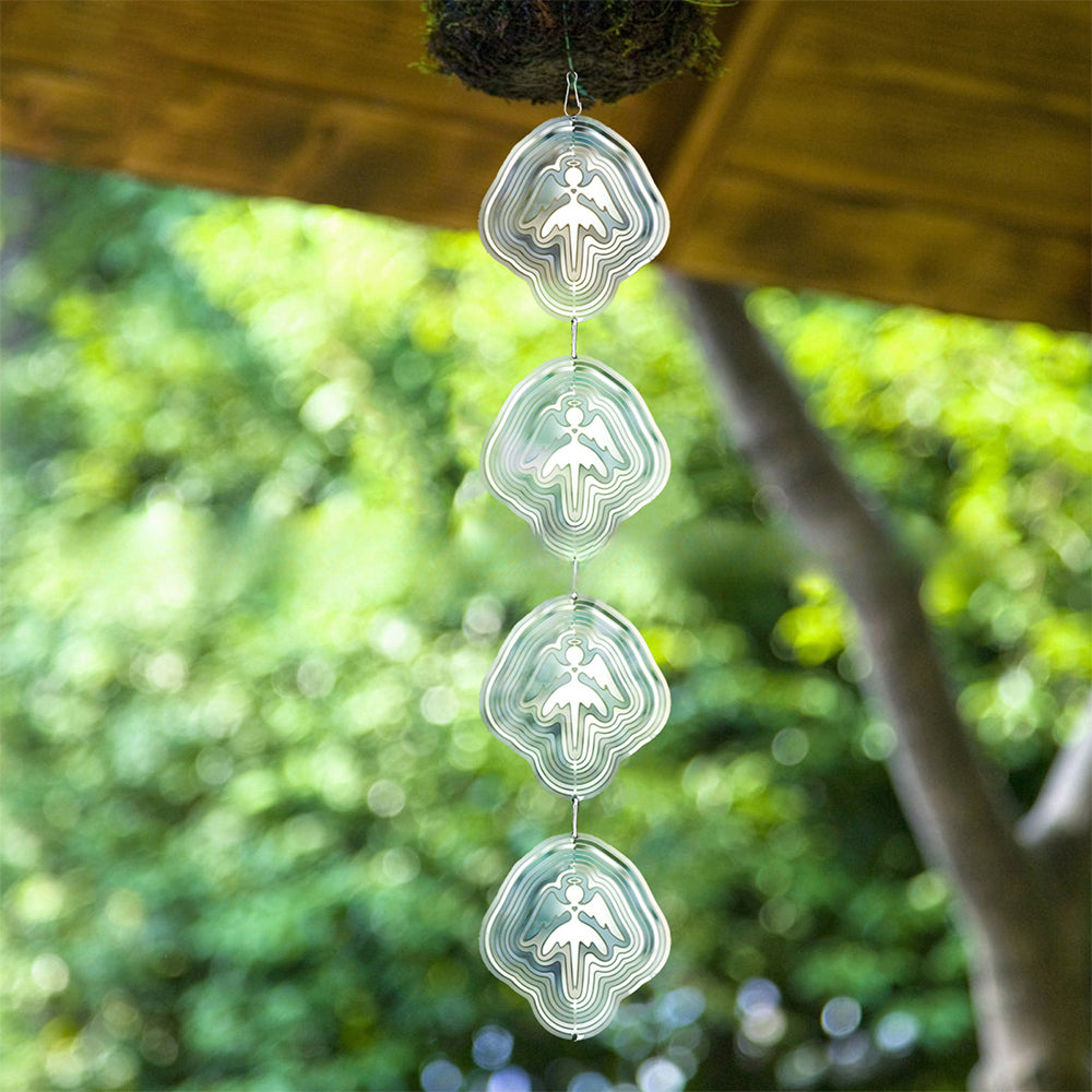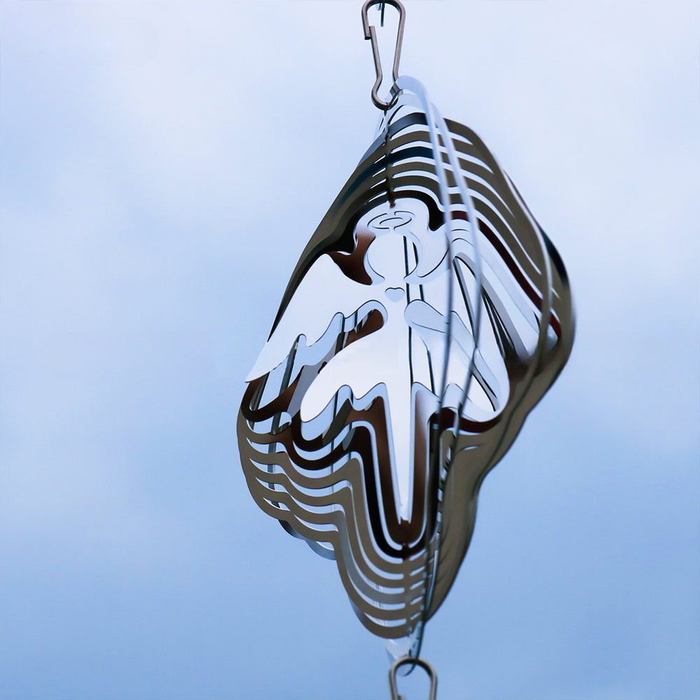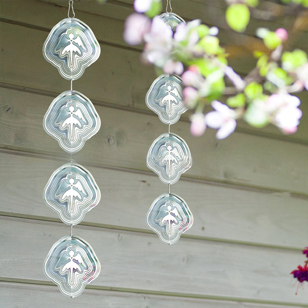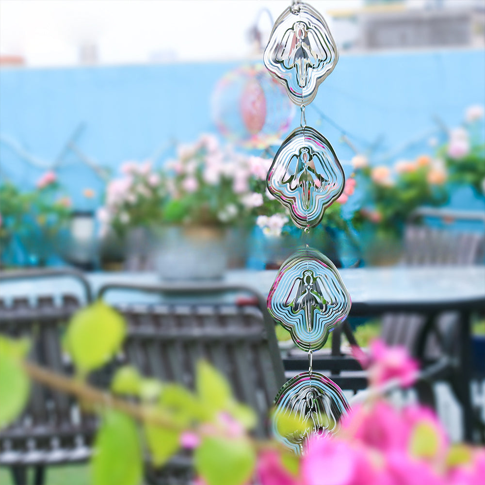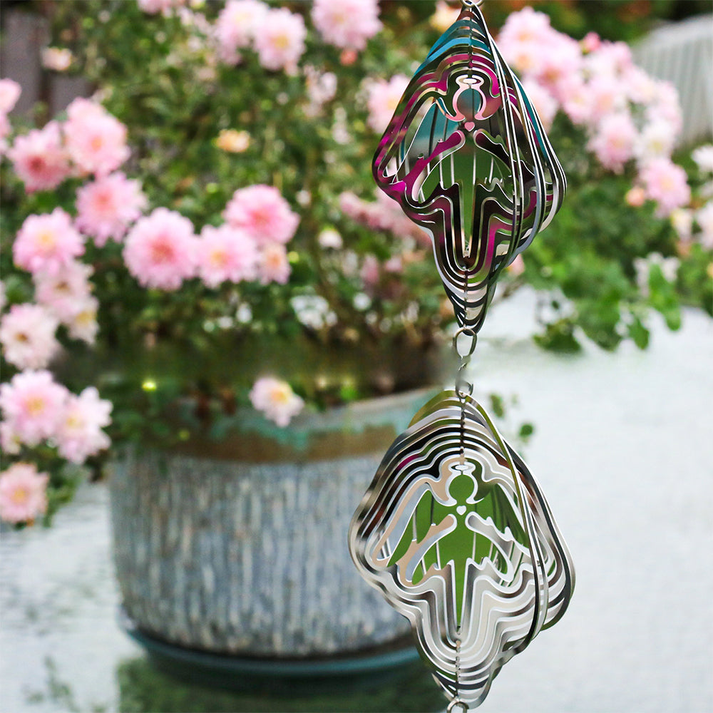 Rotating Angel Wind Spinner 3D Stainless Steel Wind Chime Crop Bird Repeller